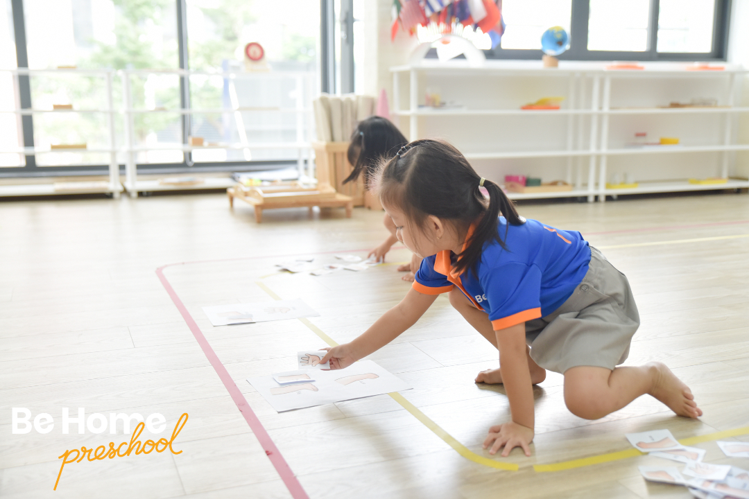 Các lớp học tại Be Home Preschool bố trí gọn gàng, khoa học, đầy đủ ánh sáng tự nhiên, có dụng cụ học tập Montessori riêng biệt.