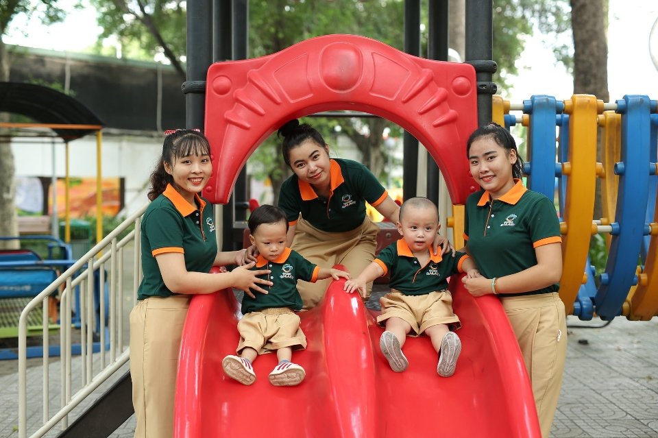Sân chơi ngoài trời thoáng đãng, xanh mát với các đồ chơi vận động hấp dẫn. Ngoài ra, trẻ còn có thể khám phá vườn cây với nhiều loại cây xanh, rau củ … tập “làm vườn”, chăm sóc cây và gặt hái thành quả khi đến mùa thu hoạch.