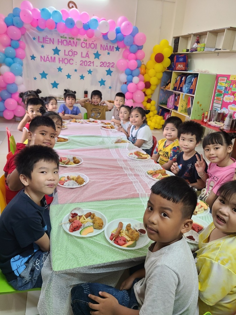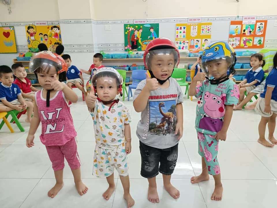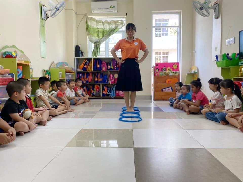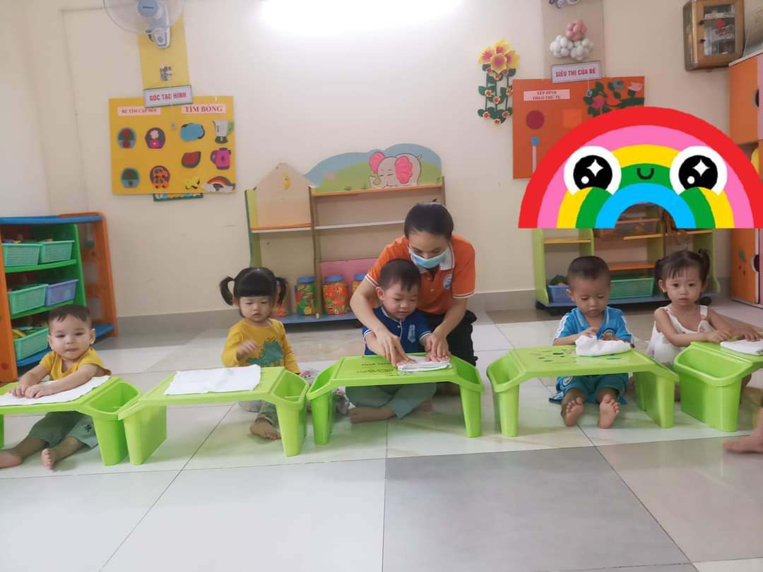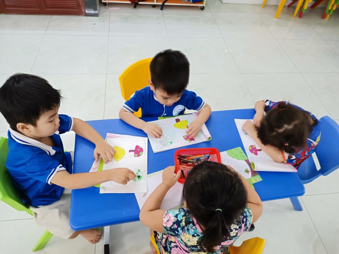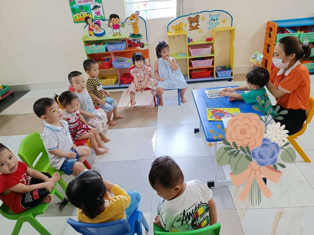 - Trường có 1 trệt 2 lầu, tổng diện tích 350 m2, trong đó có 3 phòng học rộng rãi thoáng mát gồm các lớp: Mầm, Chồi, Lá