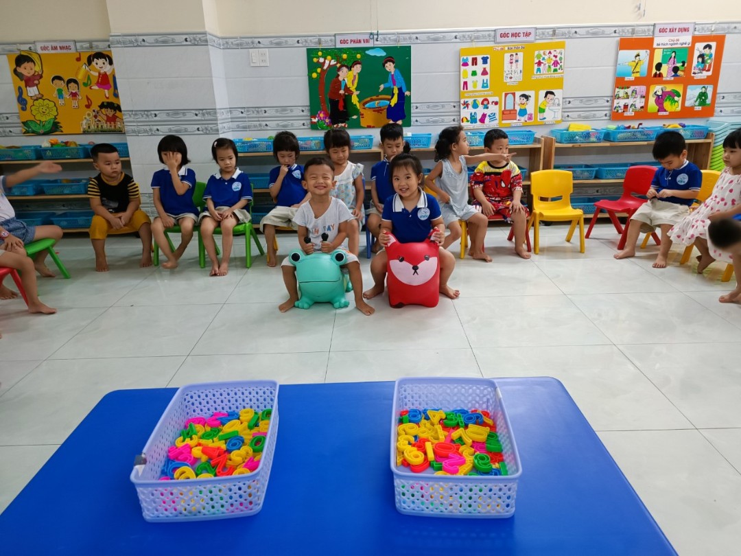 - Mỗi phòng học được trang bị TV, đồ chơi , dụng cụ dạy và học theo từng lứa tuổi rất phong phú.
