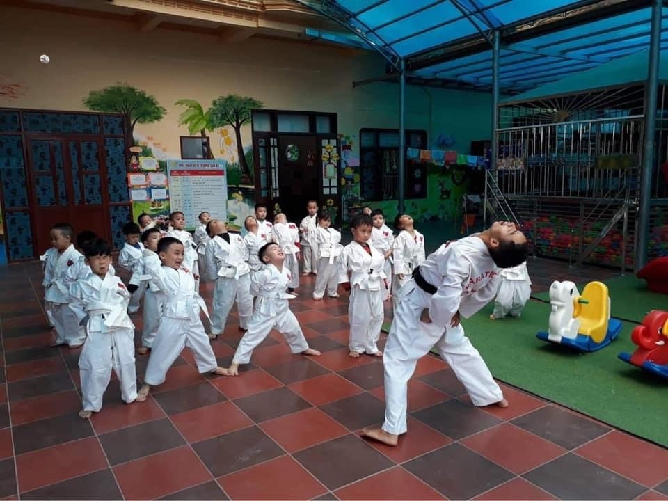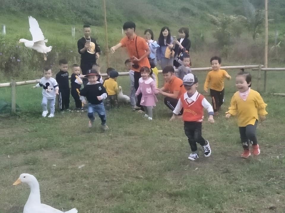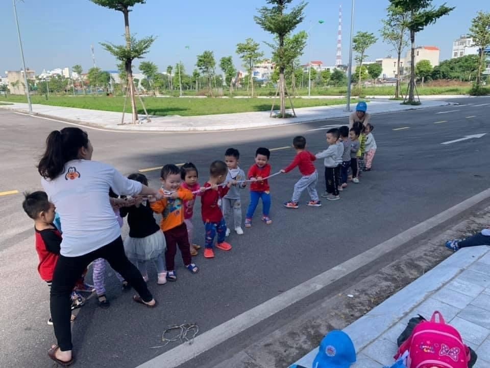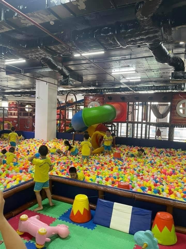Sân chơi rộng rãi, thoáng mát, sạch sẽ tạo điều kiện vui chơi ngoài trời cho các con.