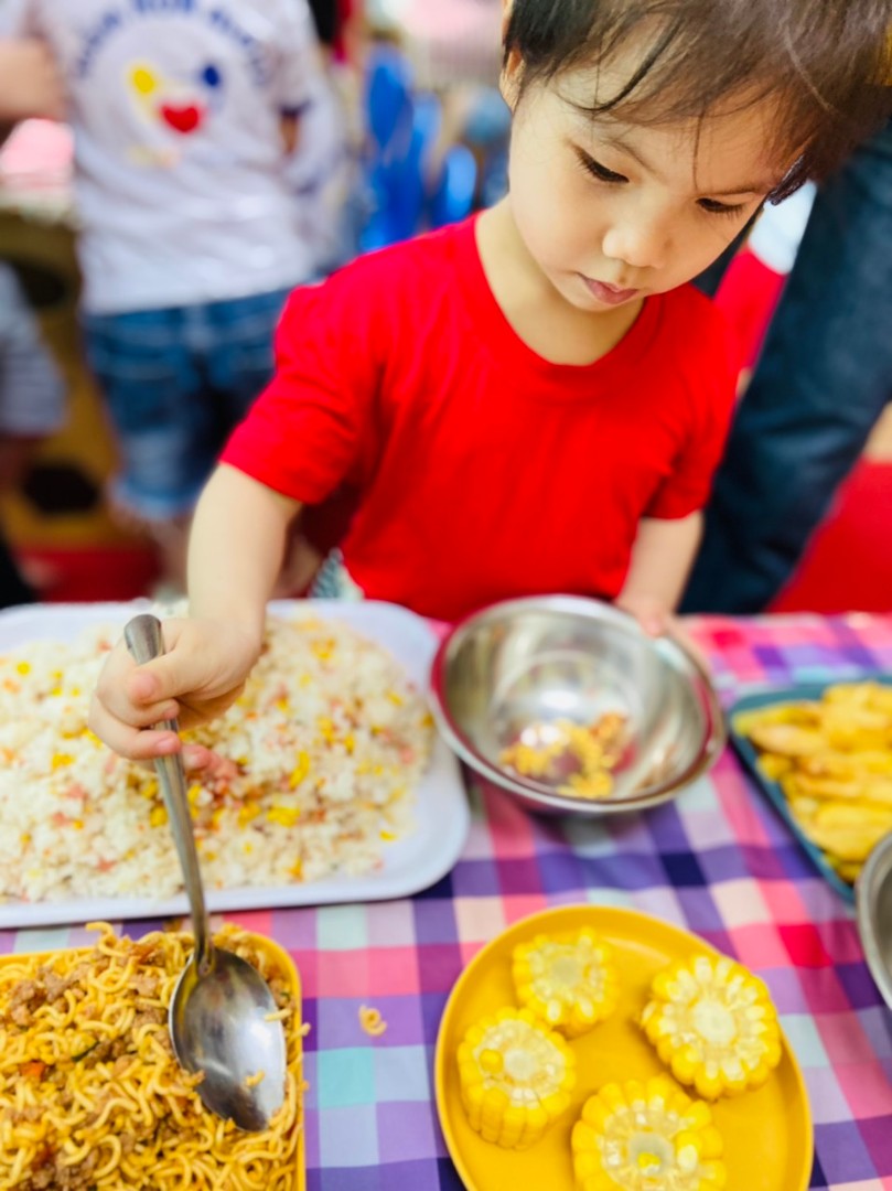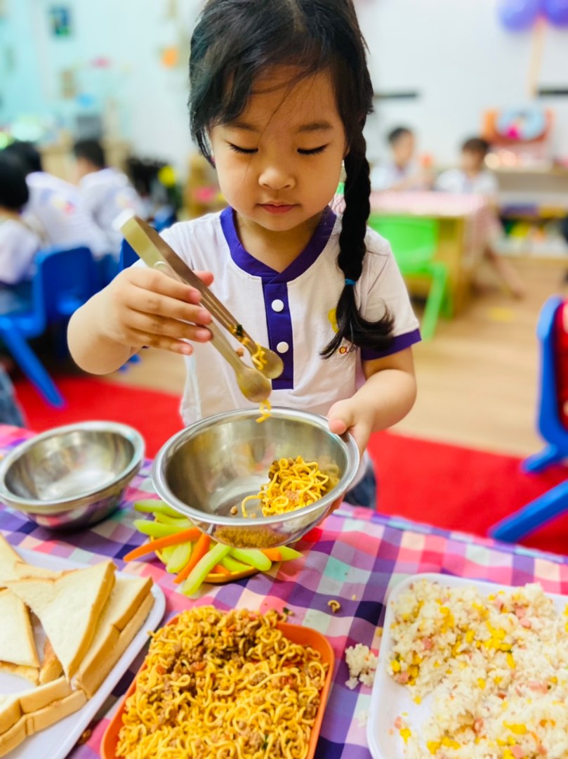 - Thực hành cuộc sống: các cháu được học cách mặc quần áo, đi giầy dép, đánh răng, giúp ba mẹ chuẩn bị đồ ăn, dọn dẹp nhà cửa...
