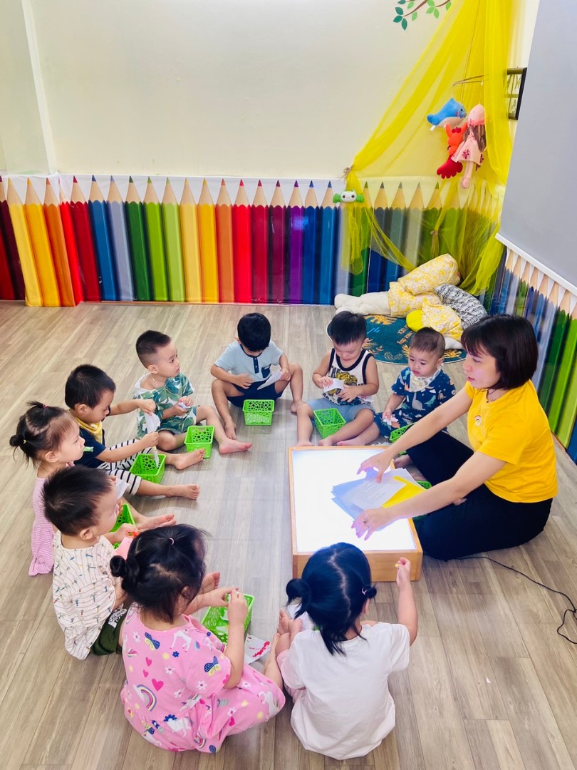 - Toán học và hình học: Trẻ được làm quen với các con số, các hình học thông qua trò chơi và tài liệu giảng dạy.
