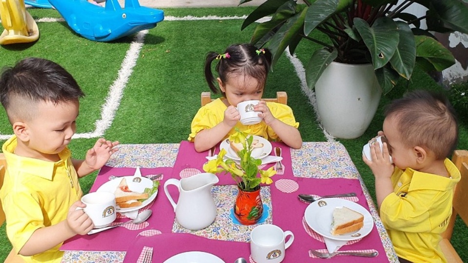 - Phòng học tiện nghi được trang bị đầy đủ giáo cụ Montessori nhập khẩu từ Hà Lan ( cung cấp bởi Nienhuis - nhà sản xuất học cụ Montessori được công nhận bởi hiệp hội Montessori quốc tế (AMI)).
