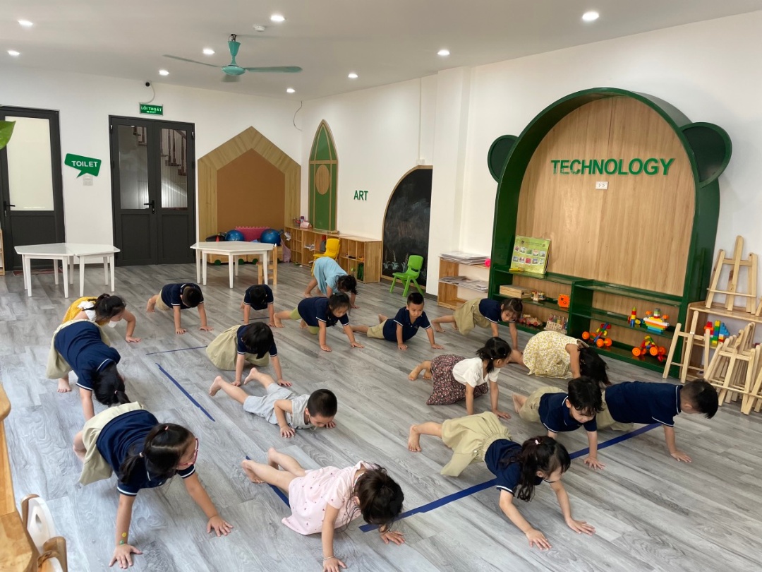 Trường có sân chơi trong nhà, ngoài trời được trang bị nhiều khu vui chơi, vận động và các đồ chơi thú vị.