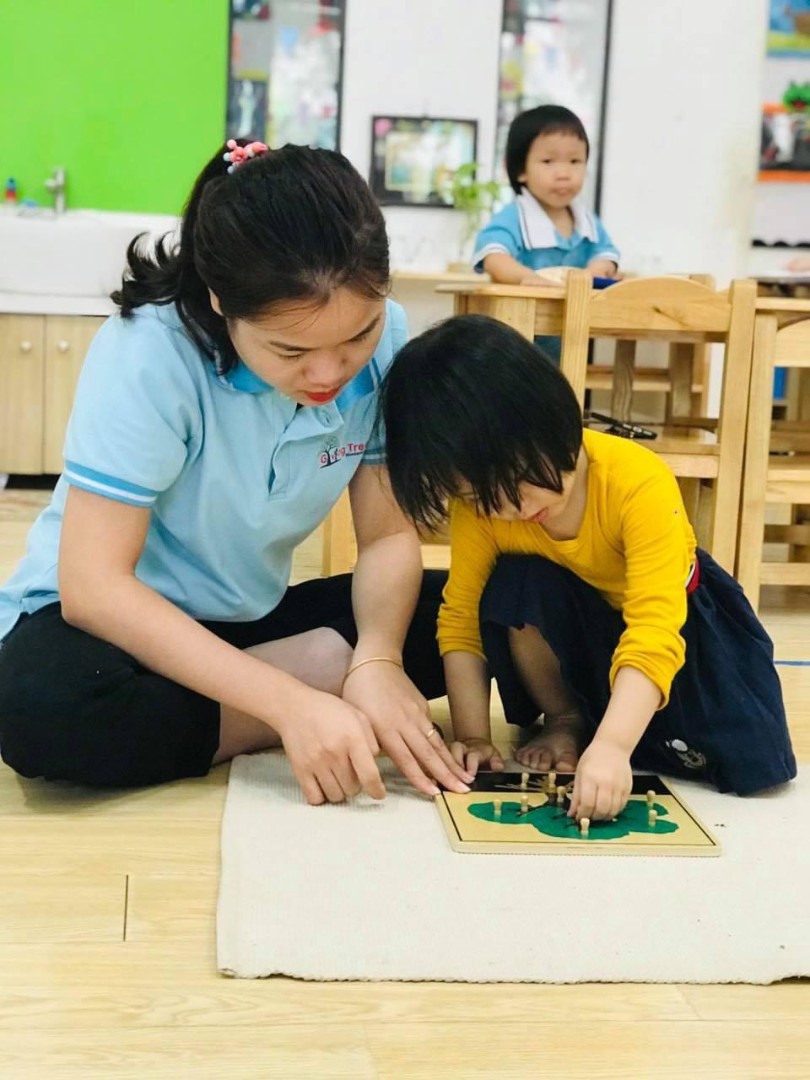 GIÁO VIÊN NƯỚC NGOÀI: Với đầy đủ bằng cấp về sư phạm, các chứng chỉ đủ điều kiện dạy lứa tuổi mầm non. Các cô có nhiều năm kinh nghiệm và tình yêu, sự nhiệt tình với trẻ. GIÁO VIÊN VIỆT NAM: Tốt nghiệp cao đẳng, đại học ngành sư phạm. Được đào tạo chương trình Montessori từ những tổ chức uy tín trong và ngoài nước. Luôn nhẹ nhàng, yêu thương, lắng nghe và thấu hiểu trẻ. GIÁO VIÊN NGOẠI KHÓA: Có bằng cấp từ cao đẳng trở lên, có kinh nghiệm nhiều năm về lĩnh vực giảng dạy tại các trường mầm non. Chương trình học chất lượng tạo ra những kết quả thực sự trên trẻ. Nhà trường luôn có các chương trình đào tạo nội bộ về kỹ năng và tạo mọi điều kiện tốt nhất để giáo viên, nhân viên giữ được sự cân bằng, hài hòa trong khi làm việc cùng trẻ.