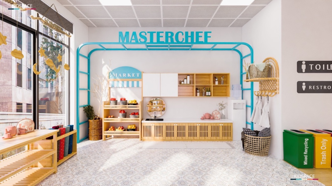 - Được trang bị full giáo cụ chuẩn quốc tế, có phòng hoạt động Steam, sân chơi vận động trong nhà giúp các bé chơi và học thoải mái.