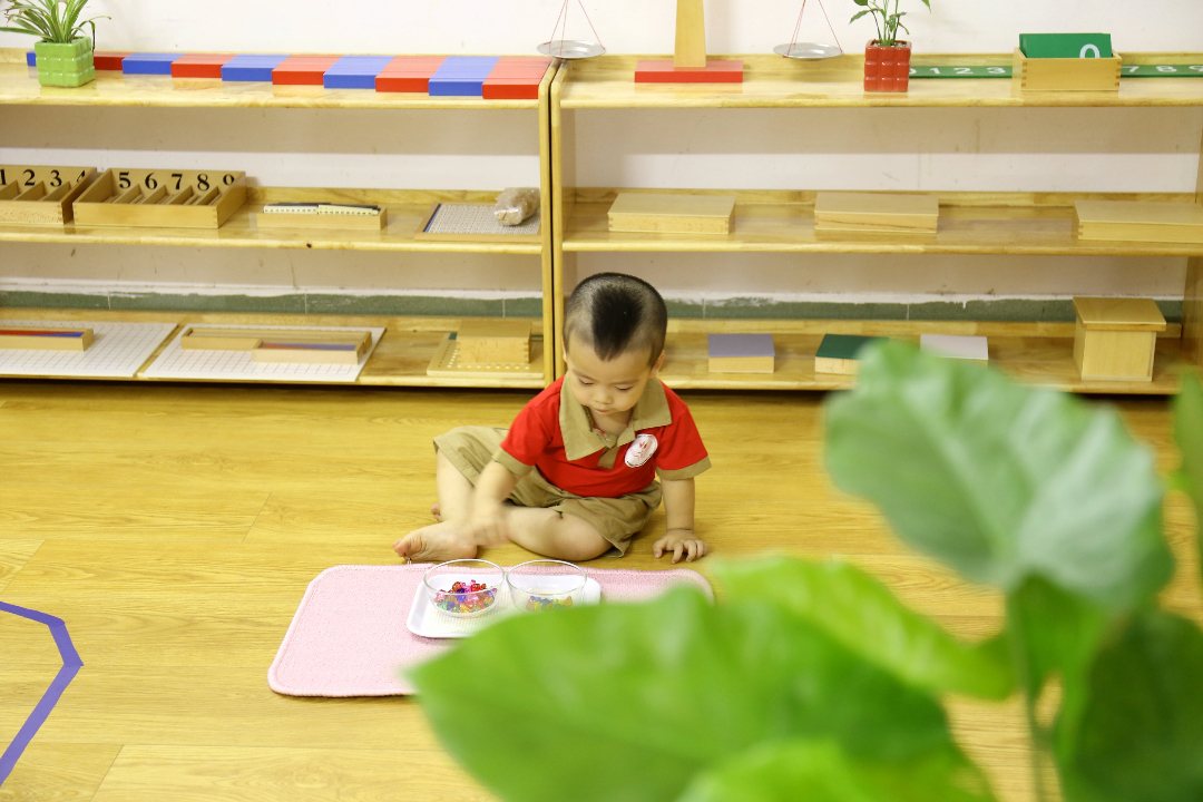 - Các khối giáo cụ đúng chuẩn Montessori, đồ chơi - vật dụng phong phú cho các con thỏa thích học tập cùng vui chơi.