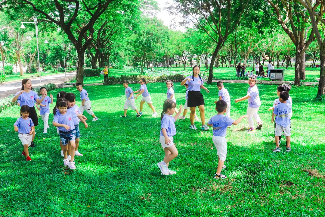 Sân vườn: rộng ngoài trời, diện tích 200m2 giúp cho bé có các tiết học quan sát môi trường sống thú vị.