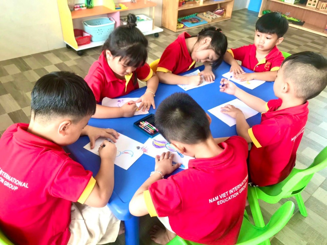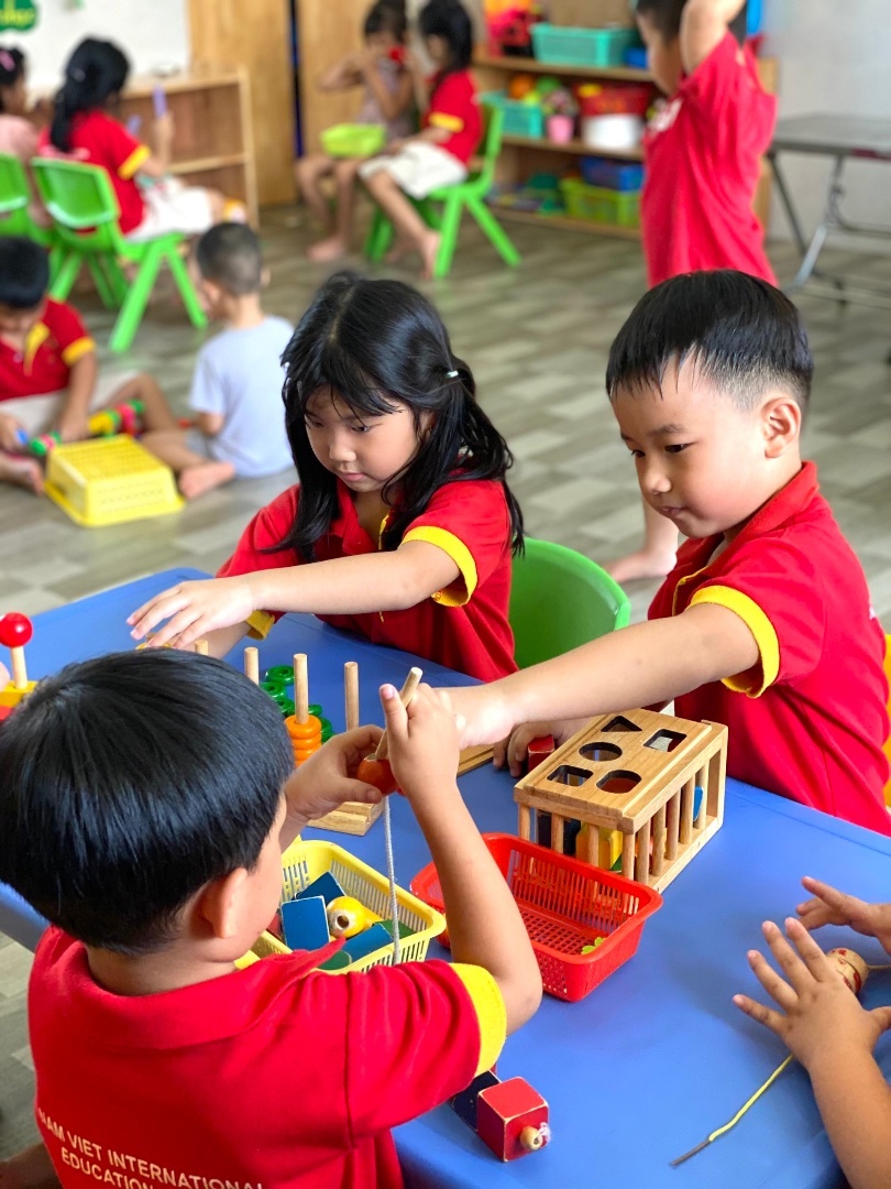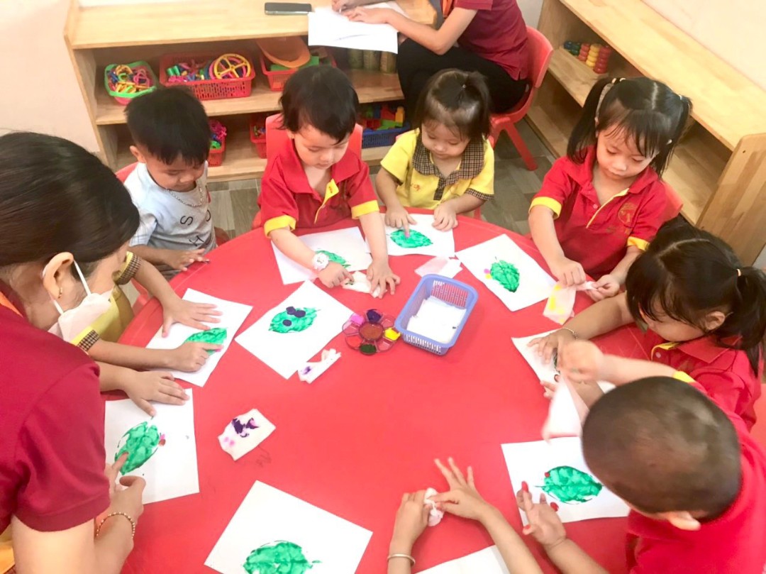 - Phòng được trang bị điều hoà, quạt máy đảm bảo, thiết bị dụng cụ đồ chơi được kiểm tra chất lượng theo chuẩn giáo dục, theo chương trình STEAM, lựa chọn nhà cung cấp uy tín - đảm bảo an toàn cho bé.