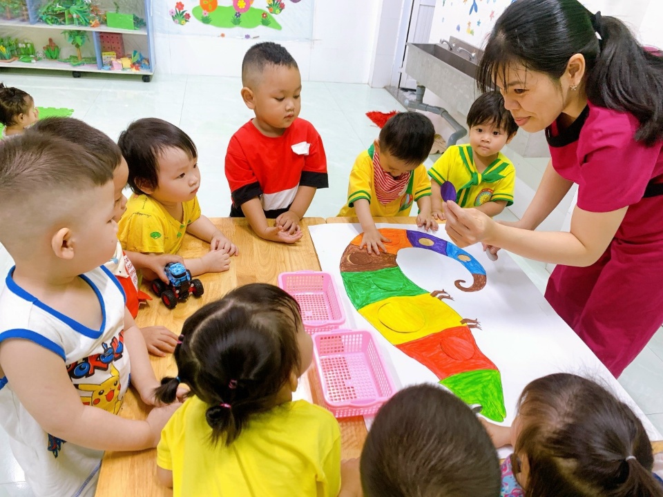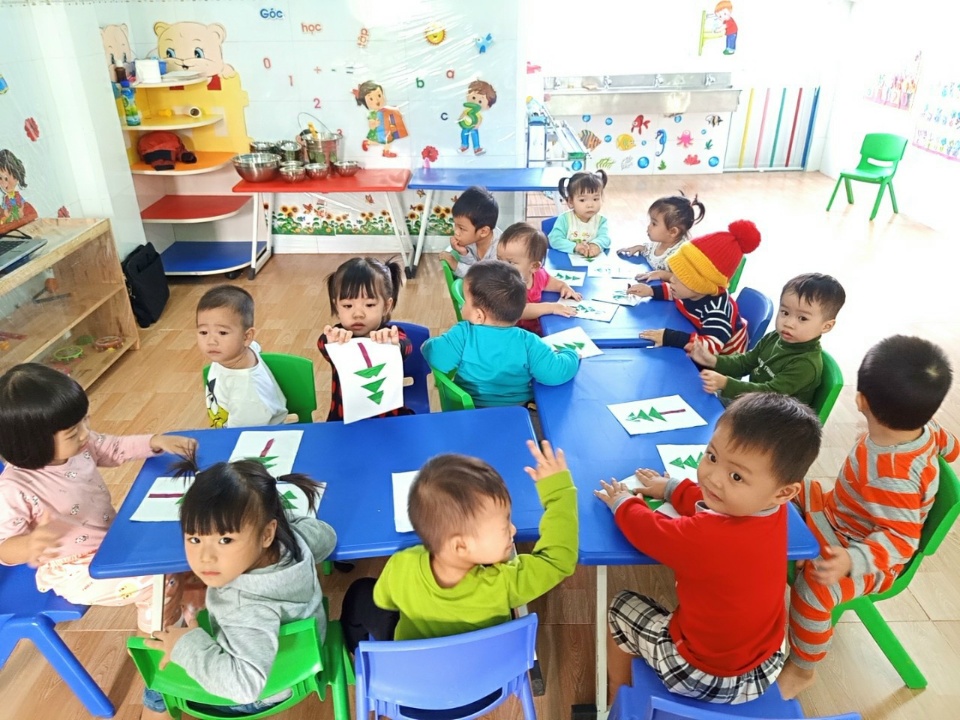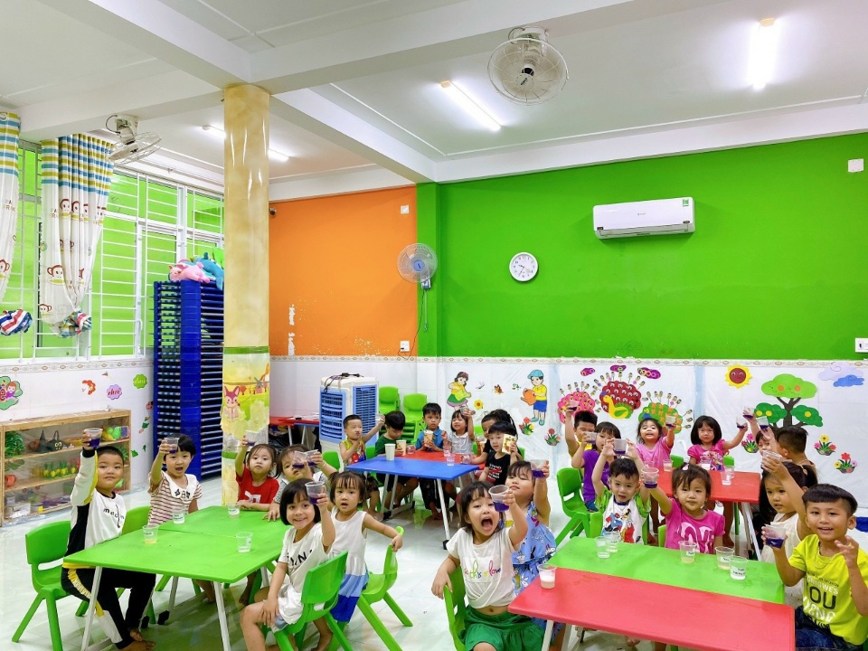 - Lớp học được trang bị đầy đủ Smart TV, máy lạnh, quạt máy, đồ dùng đồ chơi đầy đủ theo tiêu chuẩn của Bộ GD-ĐT và bổ sung thêm nhiều giáo cụ giúp bé phát triển toàn diện.