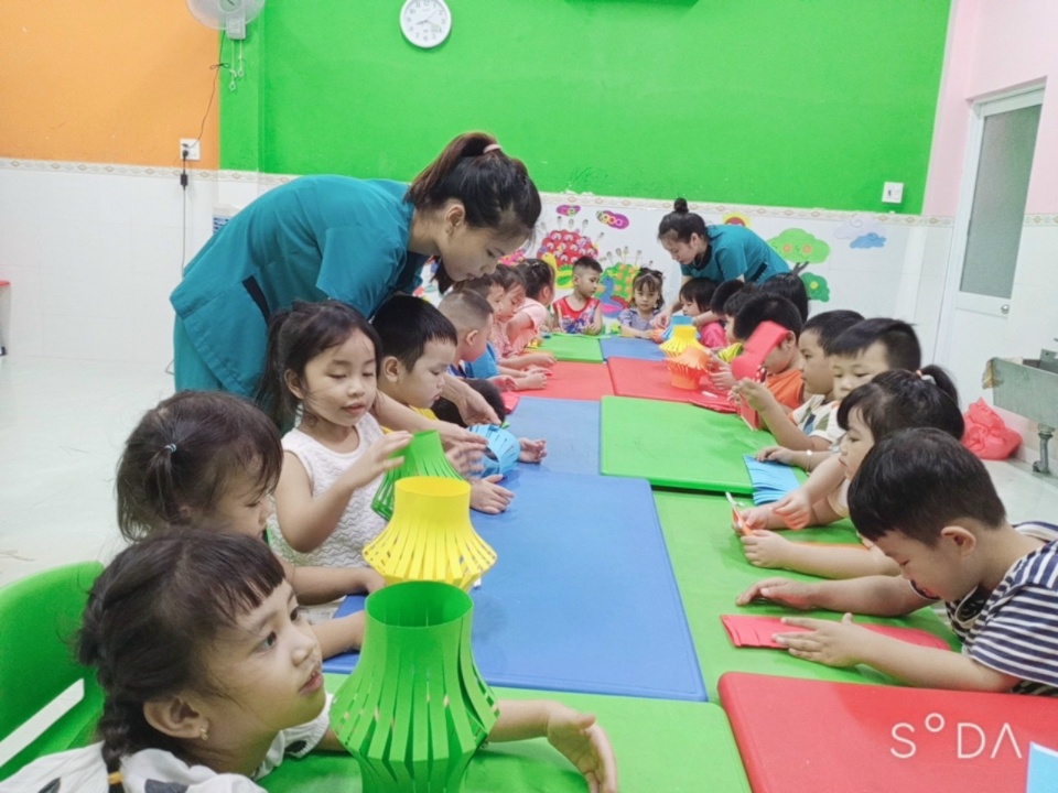 - Lớp học nhiều ánh sáng tự nhiên, khơi gợi cảm xúc và trải nghiệm tích cực cho trẻ. Trẻ được hướng dẫn gần gũi với thiên nhiên qua các bài hoạc thực tế như: trồng rau, tưới cây, quét sân, cho chim/ cá ăn… Mỗi ngày đến trường là một ngày vui của trẻ đầy ắp tiếng cười, tiếng hát…