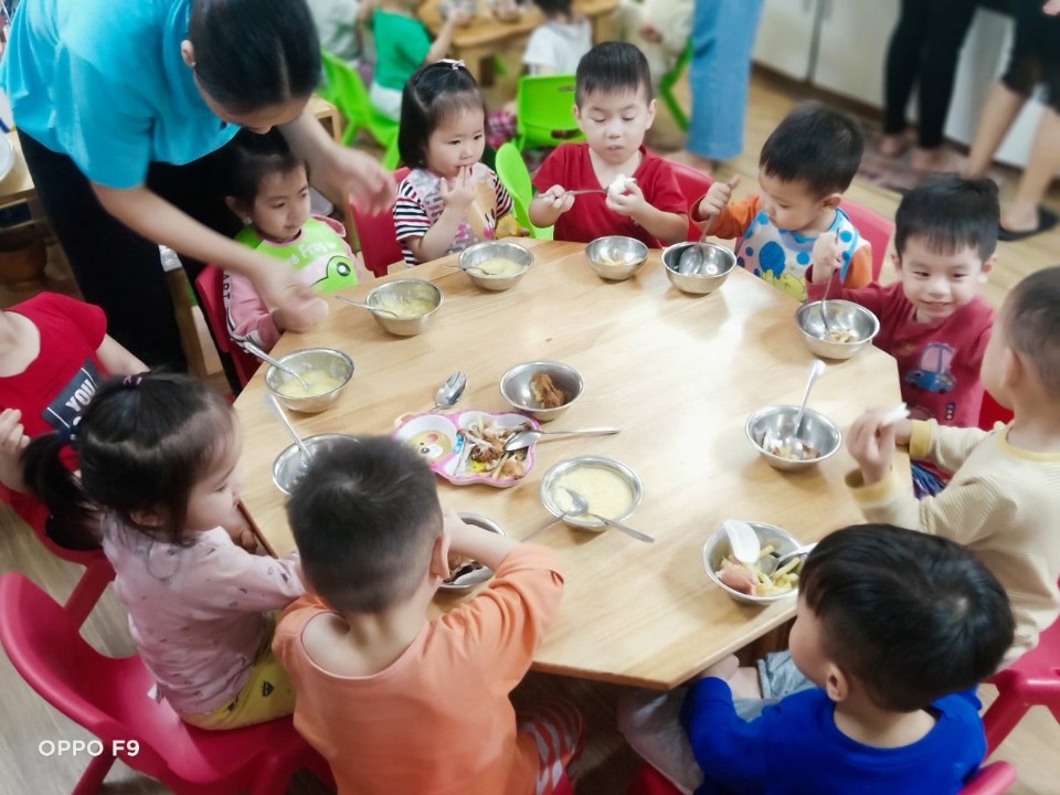 Mầm non Hoa Sen - Dịch Vọng xây dựng chế độ các bữa ăn cân bằng đủ chất dinh dưỡng, thực đơn phong phú được thay đổi luân phiên.