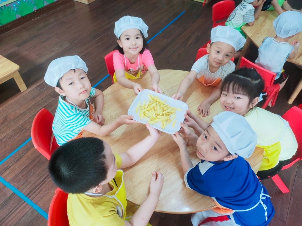 Với hệ song ngữ các con có 4 buổi tiếng anh với GVNN và GV tiếng anh Việt nam ở trong lớp nửa ngày,