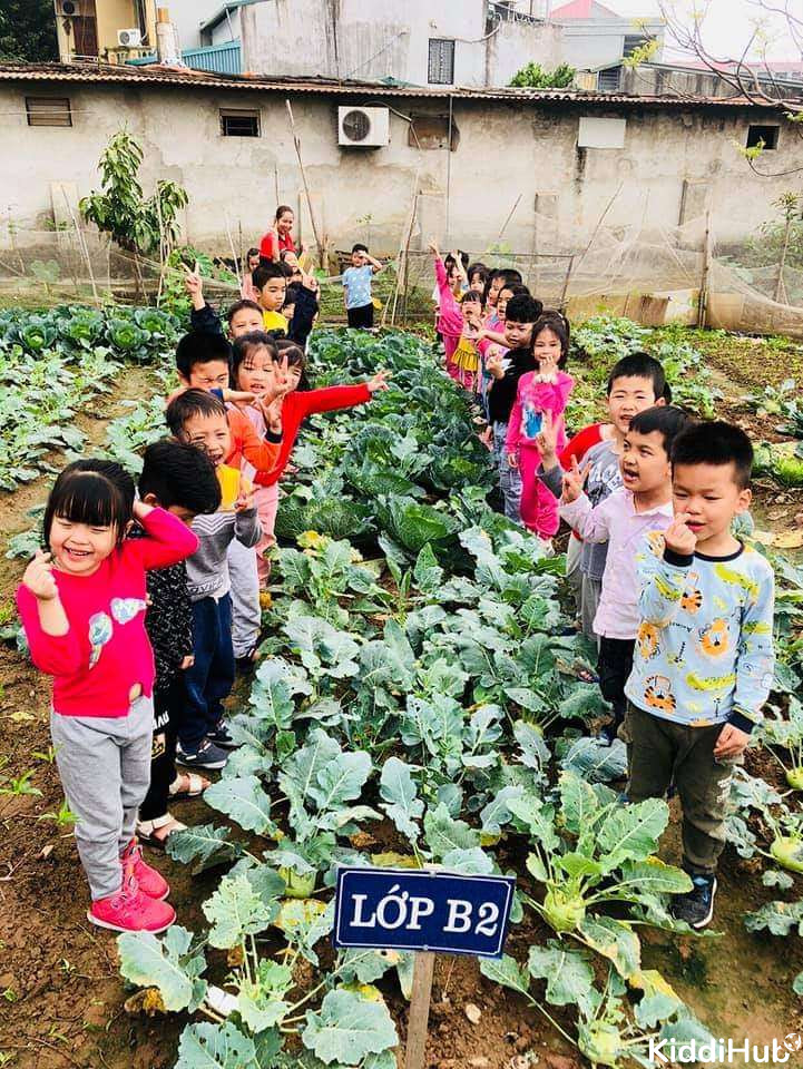 Sân chơi ngoài trời rộng rãi, có vườn rau sạch cung cấp rau cho bé và tạo cho bé không gian hoạt động ngoài trời.