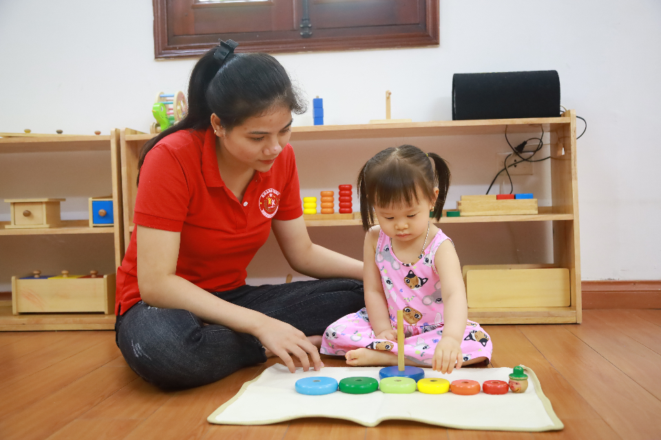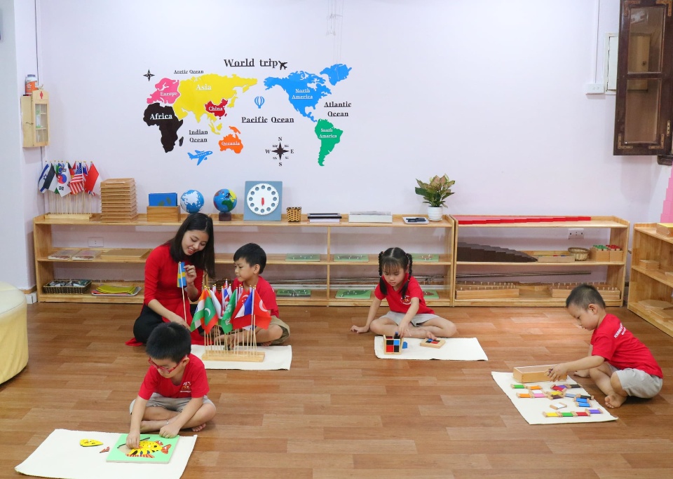 Các giáo cụ đều bằng chất liệu gỗ, tre tự nhiên thân thiện với môi trường không gây hại cho trẻ nhỏ. Ánh sáng thiên nhiên được tận dụng tối đa với hệ thống cửa sổ và ban công dưới bóng cây xanh mát