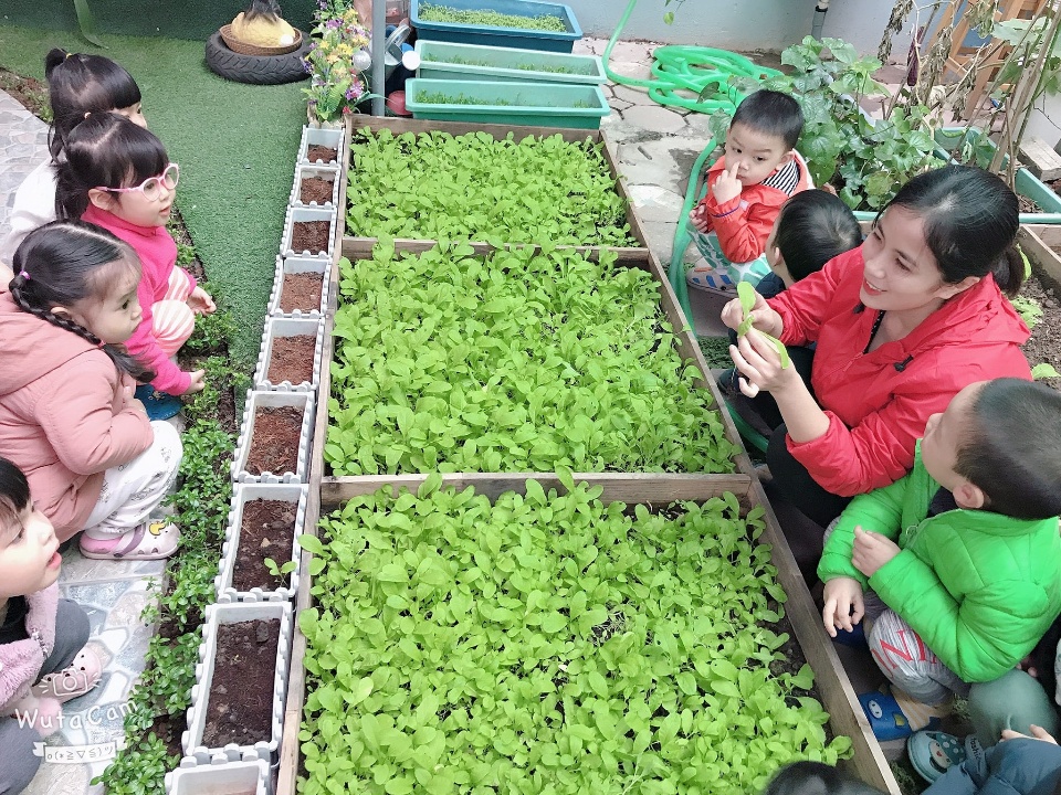 Bên cạnh đó trường mầm non Khang Nhi còn có vườn trồng rau hoa cây ăn quả, bể cá, bể phao phục vụ chơi nước