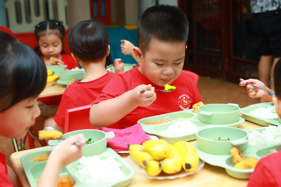 Lớp có phòng riêng biệt : phòng học, phòng ăn, phòng dành cho trẻ mới đi học chưa quen nếp sinh hoạt, mỗi phòng đều có khu vệ sinh riêng biệt, tổng diện tích các phòng dành cho 1 độ tuổi khoảng 80m2, sàn nhà được lát gỗ vị trí trường ở trong ngõ cụt nên không có xe cô bụi bặm và tiếng ồn, ngõ rộng ô tô PHHS đưa đón có thể vào được