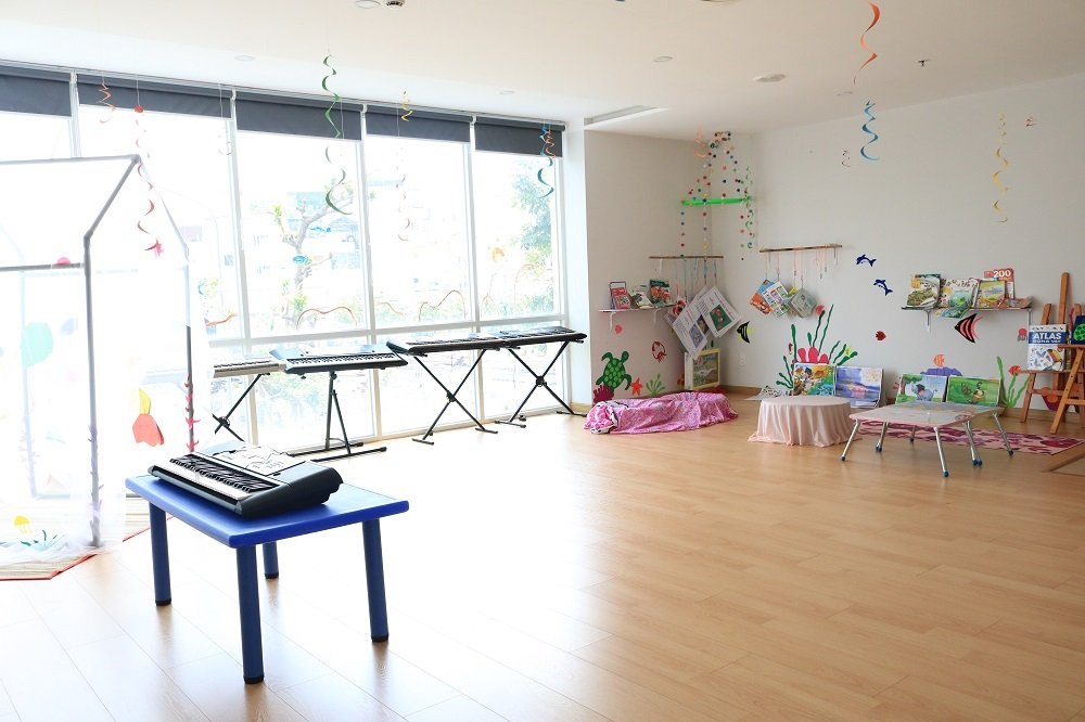 - Phòng Anh văn; Trẻ được học với giáo viên nước ngoài với các môn học như STEM, ngữ âm, từ vựng, ... với các học cụ thiết kế riêng phục vụ cho từng tiết học giúp trẻ tiếp thu nhanh và hiệu quả hơn.