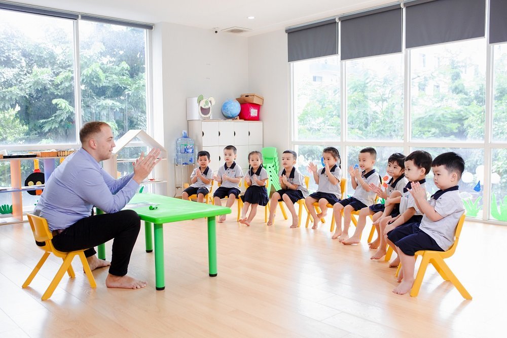- Phòng Anh văn; Trẻ được học với giáo viên nước ngoài với các môn học như STEM, ngữ âm, từ vựng, ... với các học cụ thiết kế riêng phục vụ cho từng tiết học giúp trẻ tiếp thu nhanh và hiệu quả hơn.