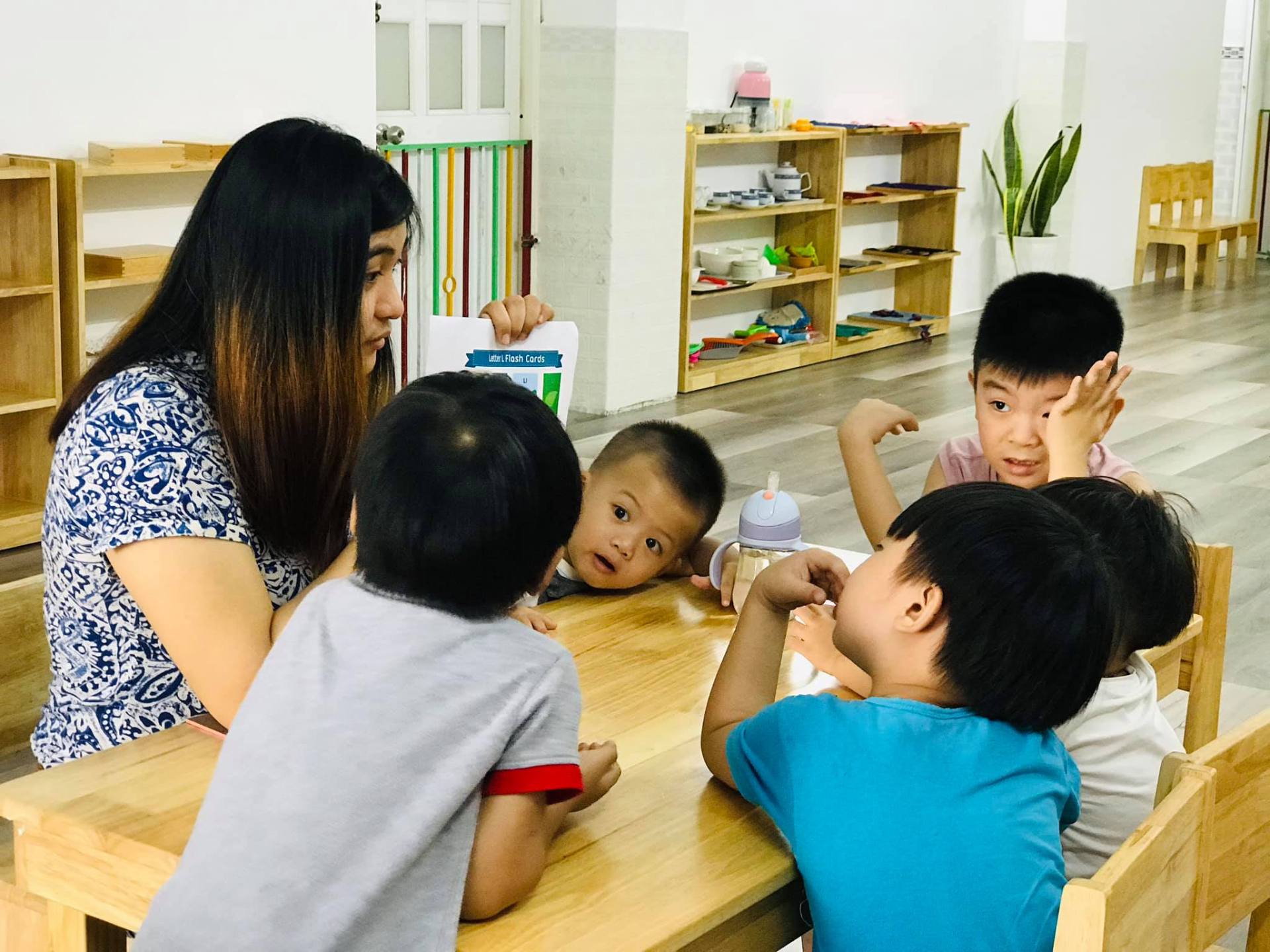 Hàng ngày bé được học với các tiết Montessori với giáo cụ đạt chuẩn. Các thầy cô người nước ngoài tham gia cùng con trong suốt các tiết học đảm bảo bé có một môi trường giao tiếp tiếng anh thường xuyên.