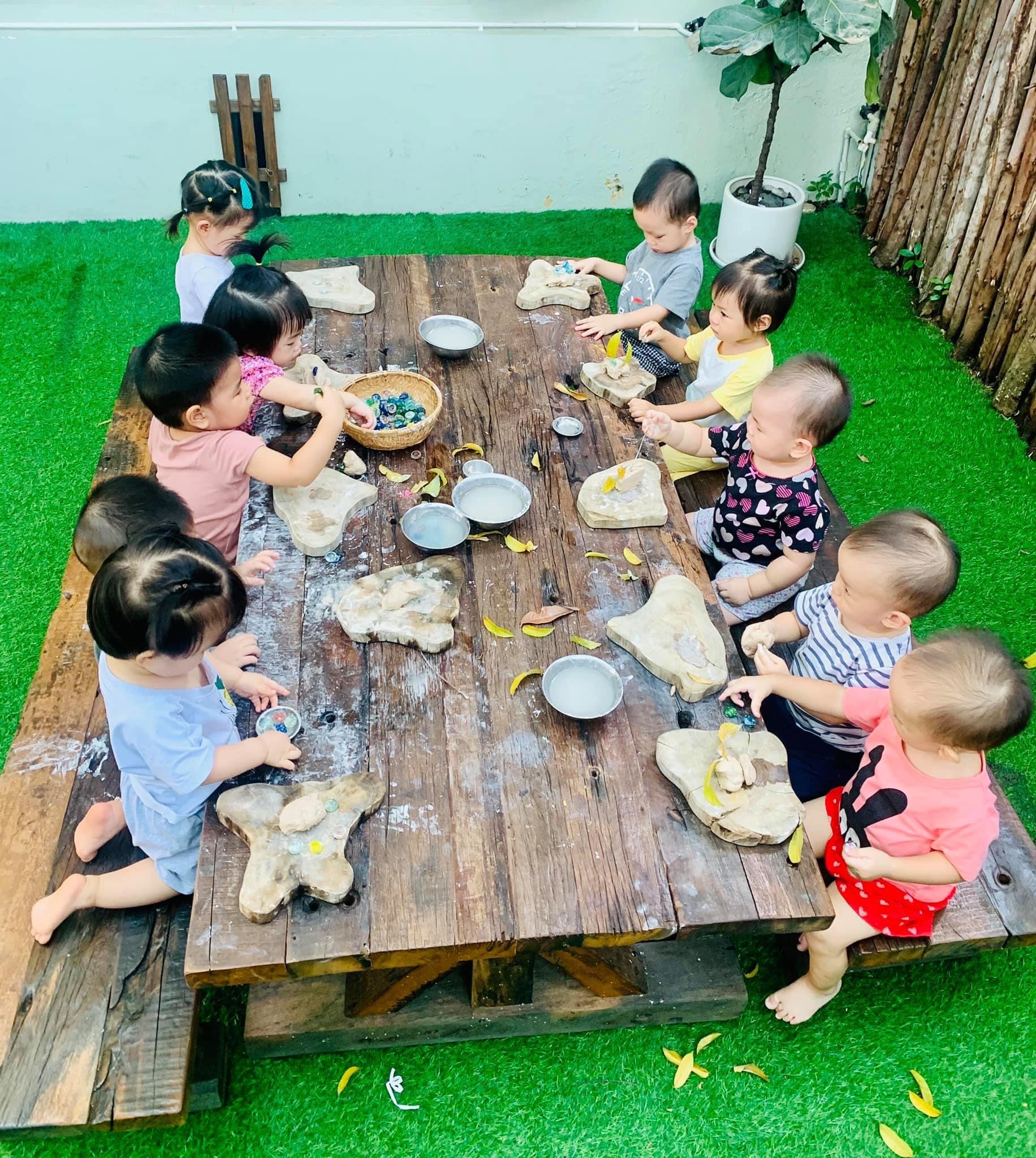 Khu vực Villa có 3 phòng học, khu vực 5 tầng có 3 phòng học, 1 phòng múa và một phòng xưởng nghệ thuật. Những học liệu chân thật gần gũi như học liệu tái chế, học liệu thiên nhiên, bàn sáng, gương soi...