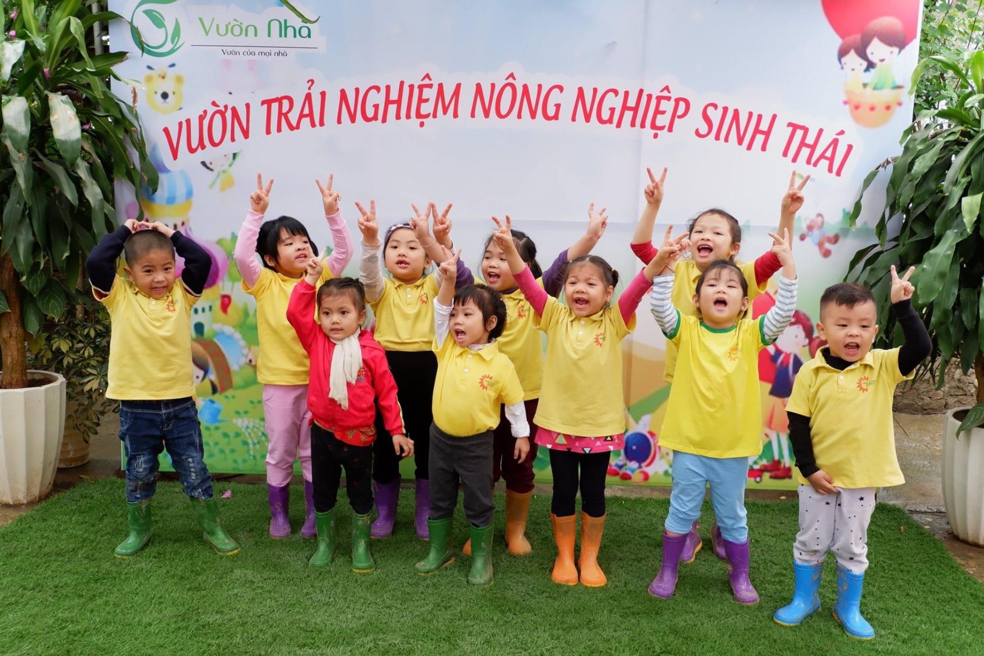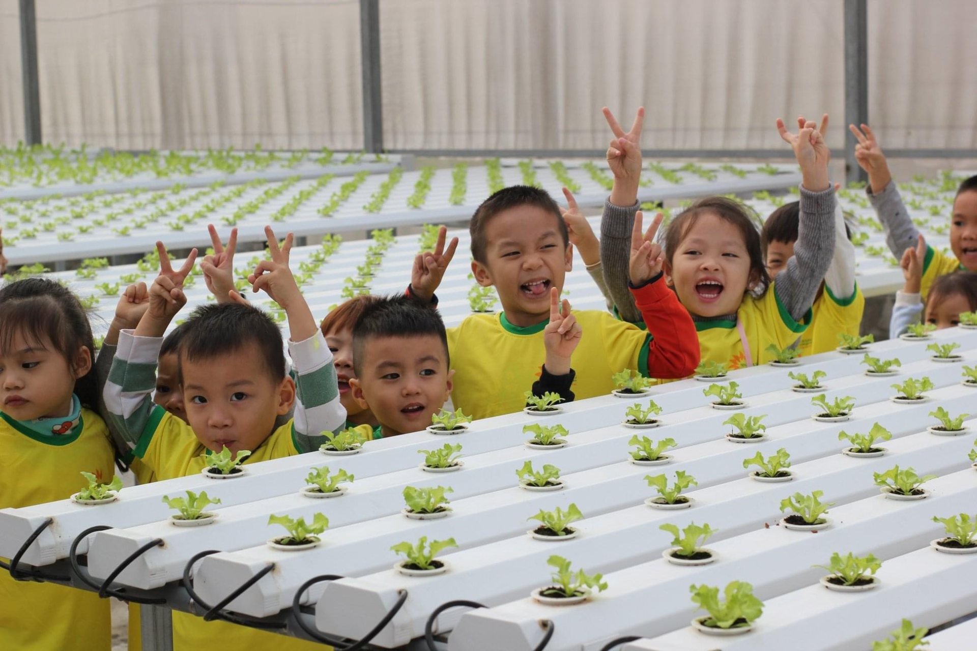 Khu vui chơi ngoài trời cạnh trường, khu vườn trồng rau củ quả trên sân thượng tầng 7.