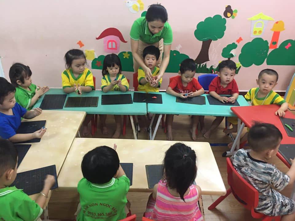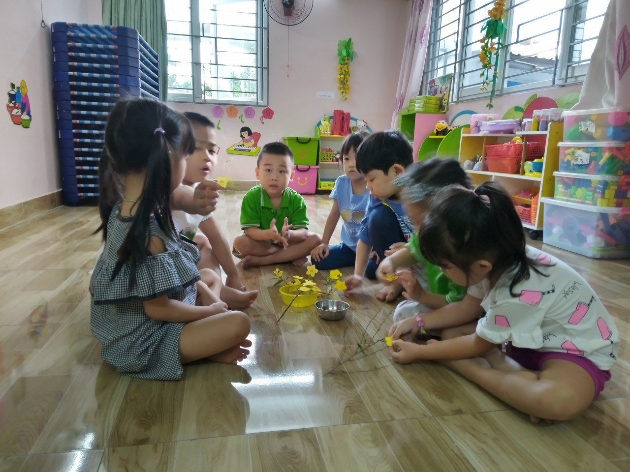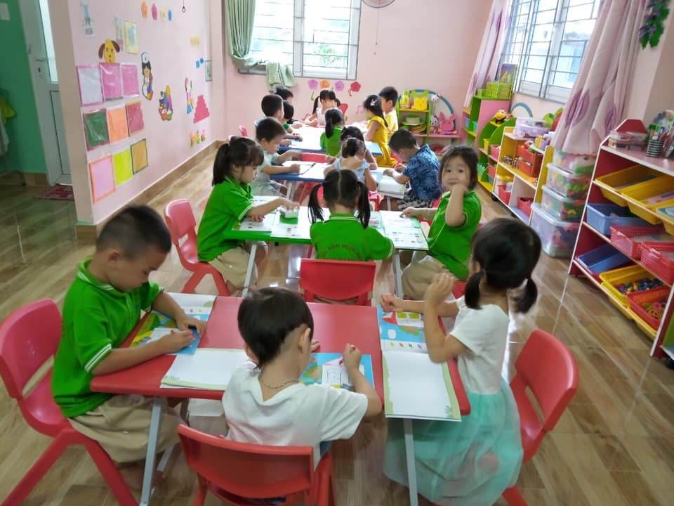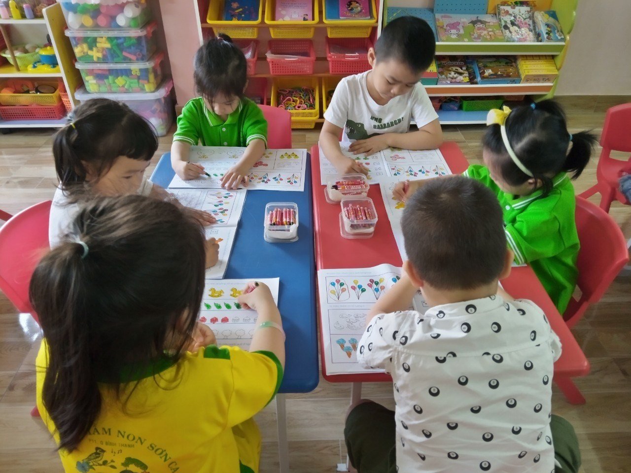 Đến trường các con được học theo chương trình giáo dục mầm non, ngoài ra học nhịp điệu, anh văn, học đàn....