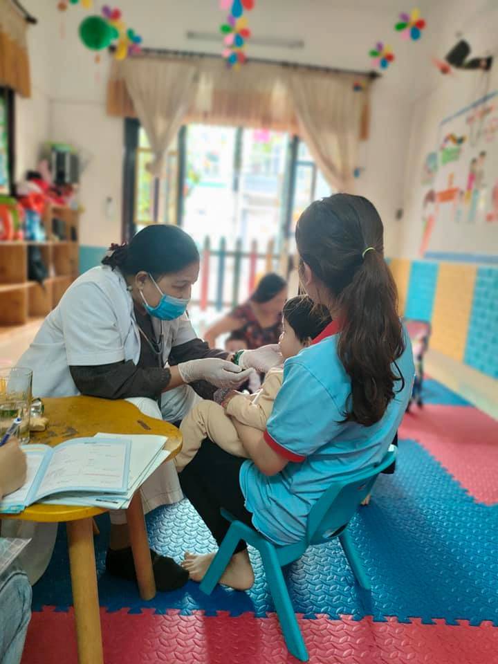 Trường tổ chức kiểm tra sức khỏe cho bé định kỳ, ba mẹ an tâm.