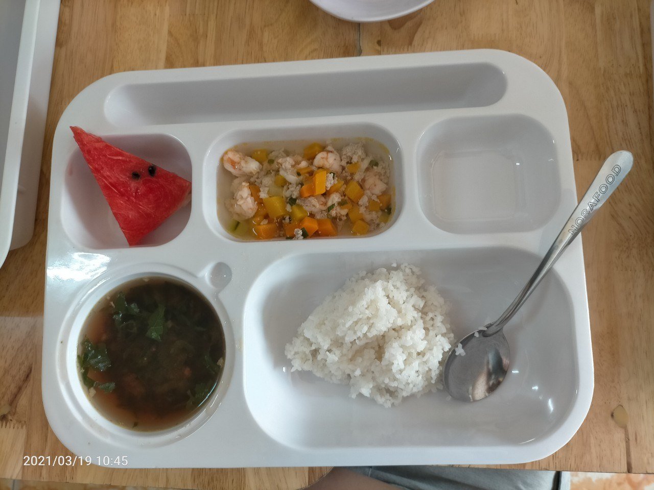 Thực đơn đa dạng thay đổi theo ngày, tuần, theo mùa....khẩu phần ăn đảm bảo dinh dưỡng được chế biến tại trường.