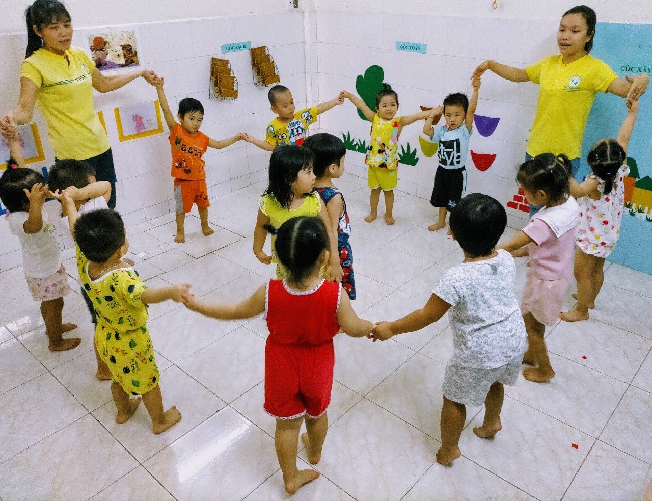 Chương trình học phù hợp với lứa tuổi, giúp con “Chơi mà học”. Cô rèn con biết tự lập, tự ăn, biết giúp đỡ ba mẹ.