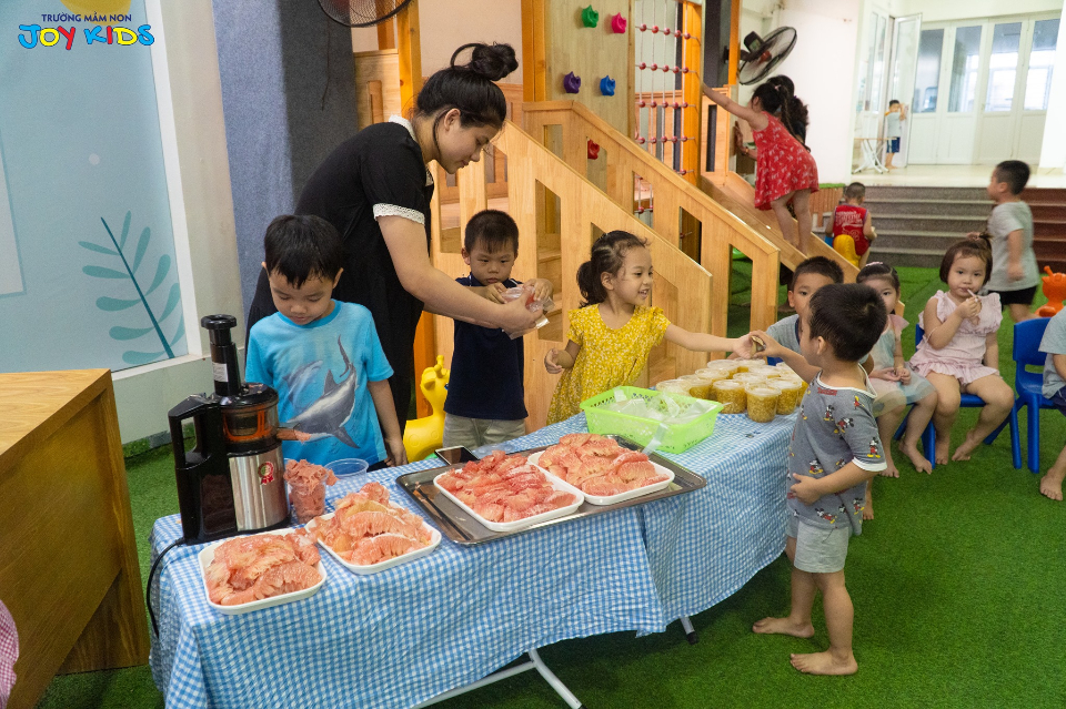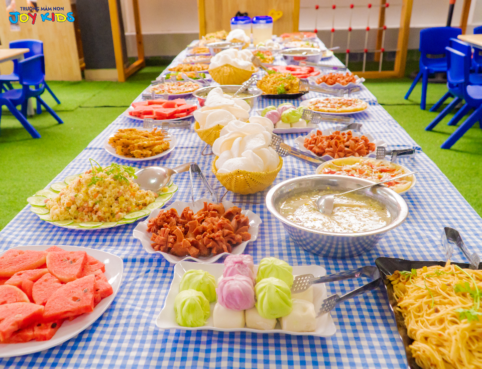 Chế độ dinh dưỡng Trường mầm non Những đứa trẻ vui vẻ ( JoyKids) - Đông Khê - Ngô Quyền - Hải Phòng hợp lý với từng độ tuổi, hàng tháng nhà trường có chuyên gia dinh dưỡng tư vấn định lượng và thực đơn phù hợp cho học sinh
