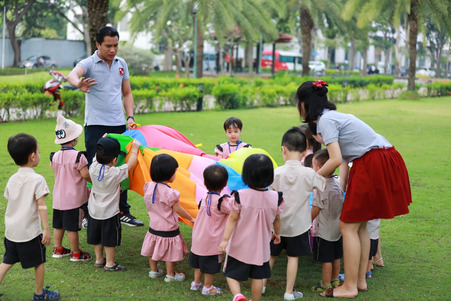 - WonderKids sở hữu khuôn viên xanh mát, nhiều cây xanh tha hồ cho các bé vui chơi.
