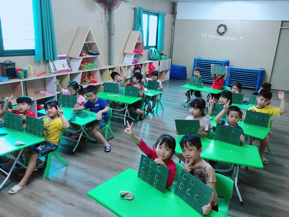 - 12 phòng học đầy đủ thiết bị, đồ dùng học tập và sinh hoạt cá nhân cho trẻ từ 15 tháng đến 6 tuổi.