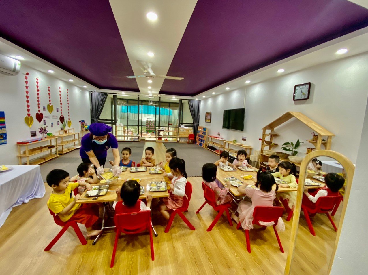 - Diện tích phòng học lên đến hơn 100m2 (Không bao gồm khu vệ sinh). Khu vệ sinh được chia khu vực nhà vệ sinh nam và nhà vệ sinh nữ, hệ thống bệt, tiểu mini dành riêng cho trẻ em.