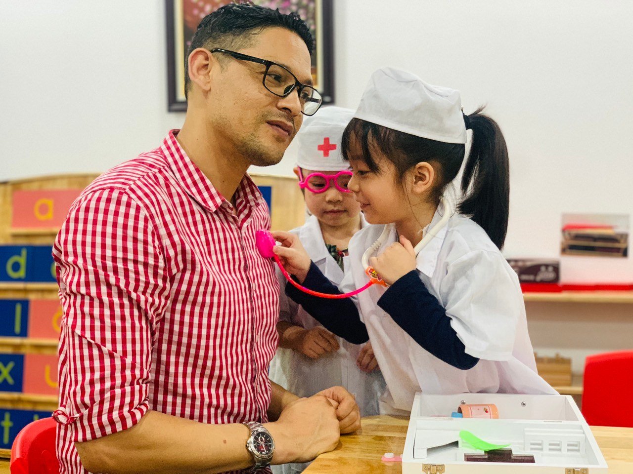 - Các giáo cụ học tập tại lớp song ngữ với thiết kế đẹp mắt, tạo không khí mong muốn đến trường với những giáo cụ nhập khẩu, đảm bảo về an toàn cho bé, chủ yếu là các giáo cụ chất liệu gỗ tự nhiên, không gây hại cho sức khỏe của trẻ.