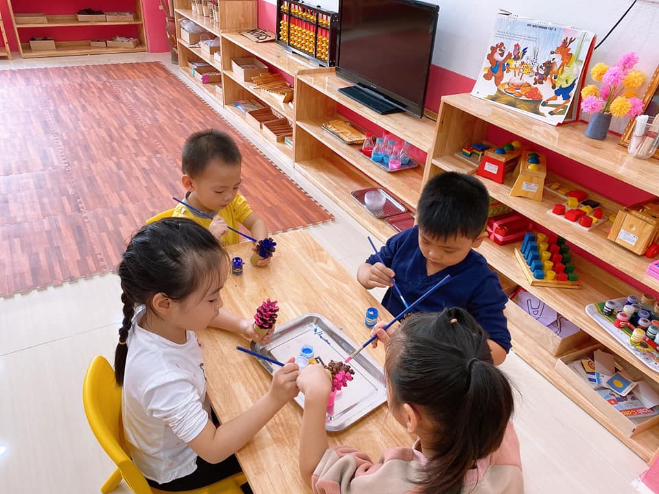 Các phòng học rộng rãi, thoáng mát theo cảm hứng Reggo Emily thân thiện với môi trường. Sân chơi trong nhà rộng sạch, trang thiết bị hiện đại. Đồ dụng học tập đầy đủ, hiện đại, an toàn.