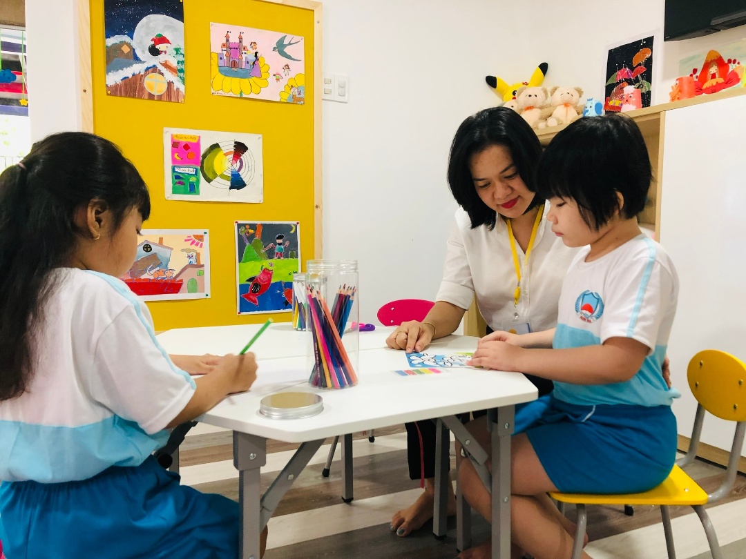 Phòng thư viện cho bé đọc sách và nhiều không gian ngoài trời rộng thoáng cho bé hoạt động