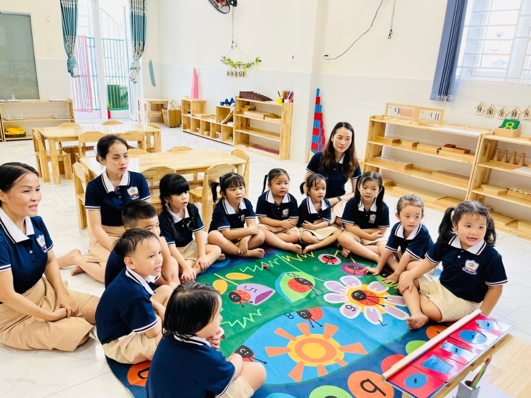Đội ngũ giáo viên có bằng cấp sư phạm chuyên môn, giữ đúng tác phong chuyên nghiệp sư phạm. Được đào tạo về chuyên môn theo phương pháp giáo dục sớm hàng tháng. Thái độ đối với con trẻ yêu thương, tôn trọng trẻ để trẻ thấy thật sự hạnh phúc, vui vẻ khi tới trường.