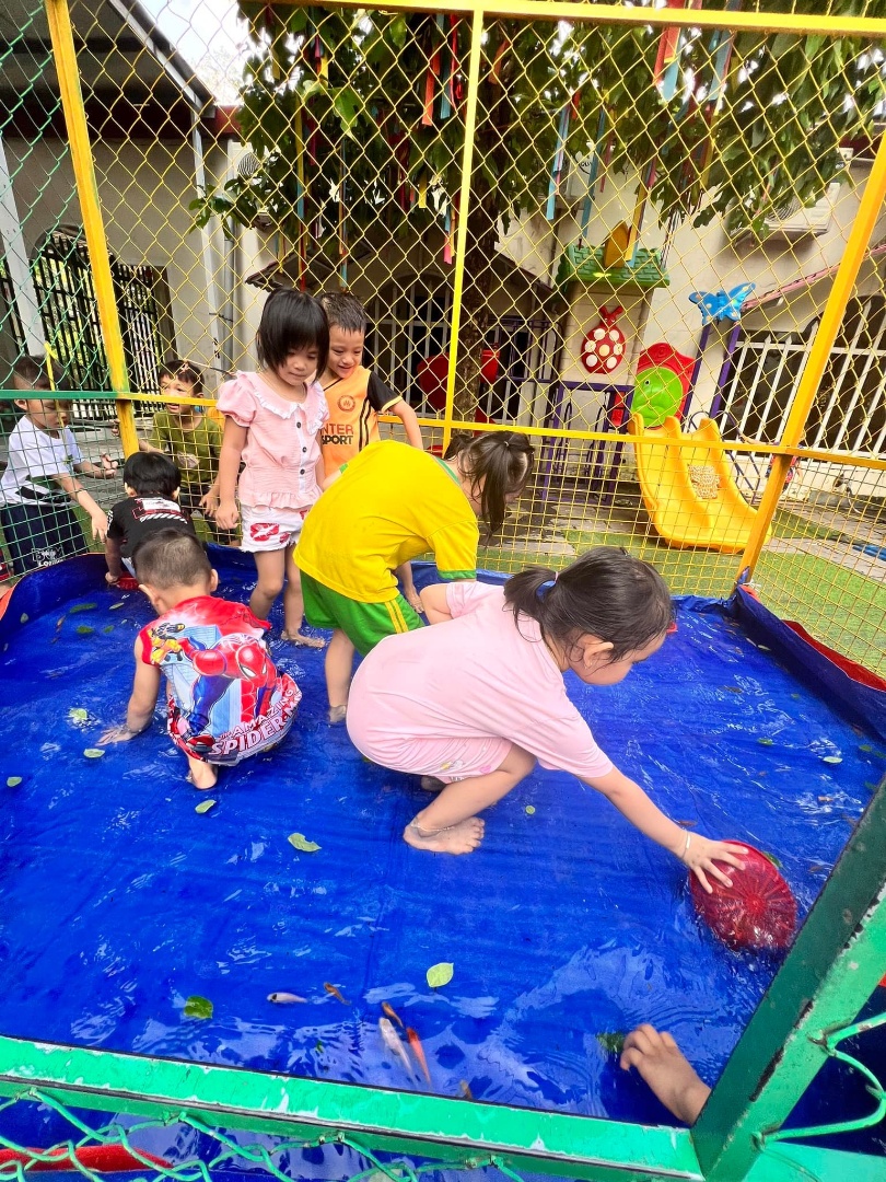 - Trường có cả sân chơi trong nhà lẫn ngoài nhà, khiến các con có thể vui đùa thỏa thích, có nhiều trải nghiệm.