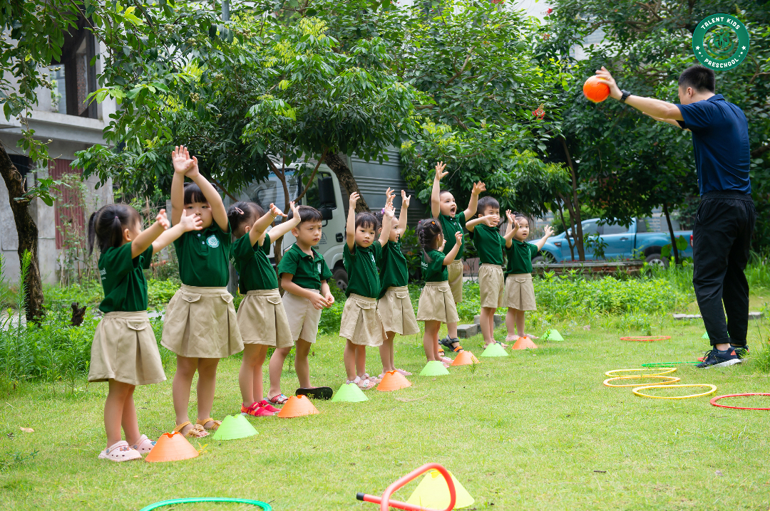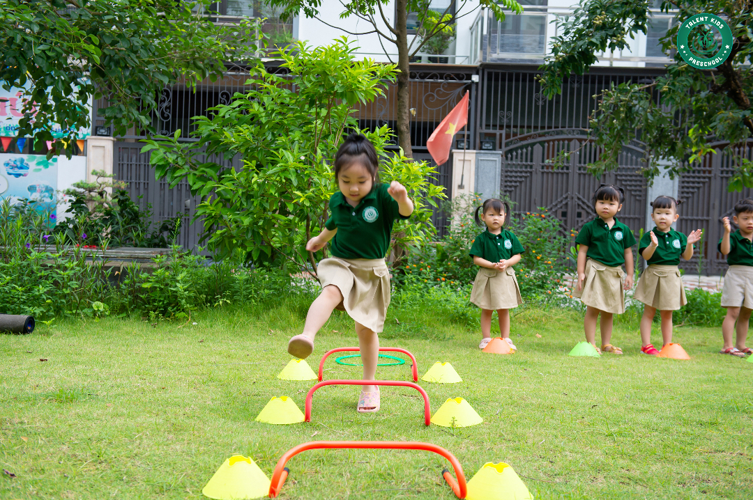 - Các con vận động xả năng lượng mỗi ngày nhờ 2 sân chơi đa năng: sân chơi trong nhà ~200m2, sân chơi ngoài trời ~300m2.