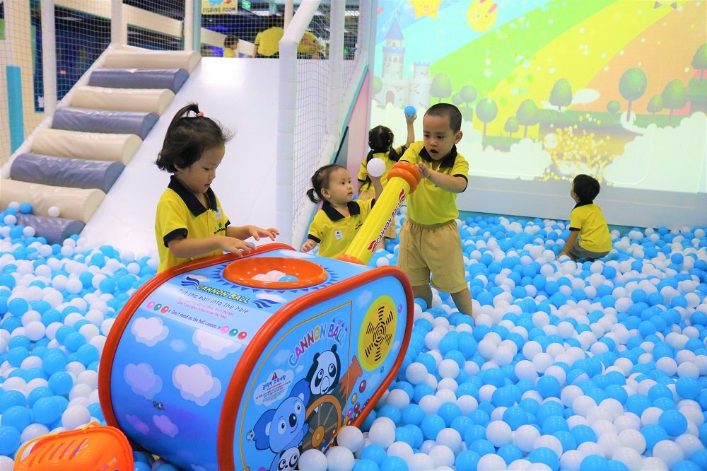 Khu vui chơi trong nhà với những bộ vận động mềm, phù hợp cho cả bé mầm non và mẫu giáo.