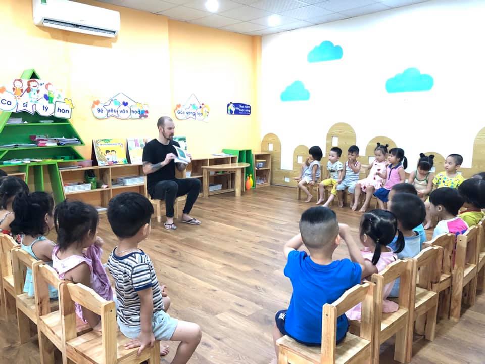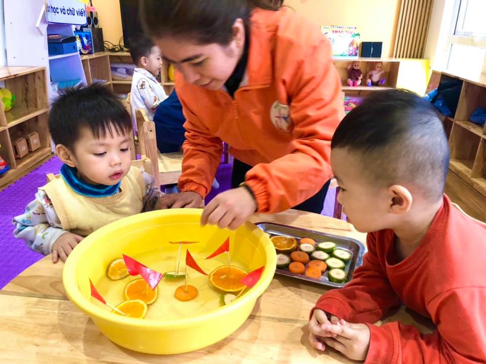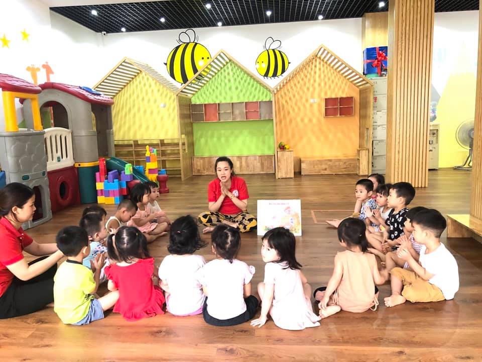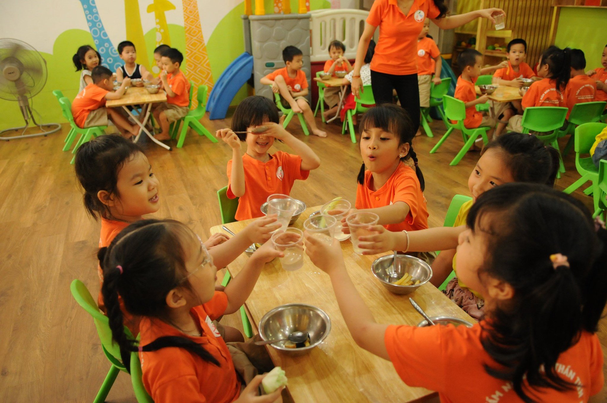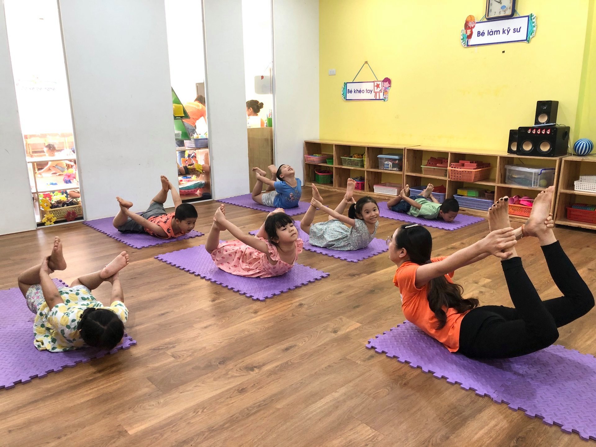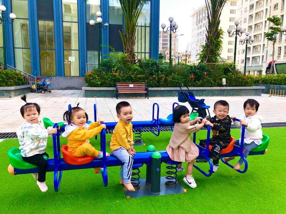Các con được vận động mỗi ngày nhờ sân chơi đa năng trong nhà, vườn hoa và sân chơi của khu chung cư A10 ngay sát trường.