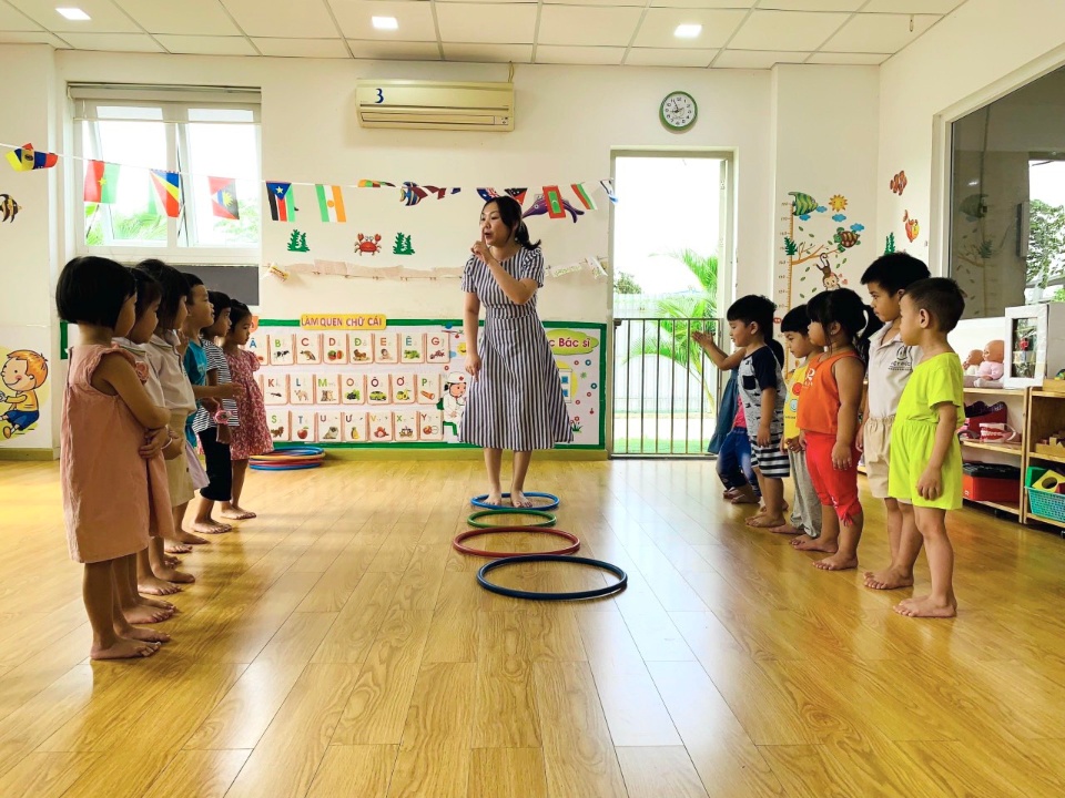 - Phòng giáo dục thể chất: được trang bị các dụng cụ thể dục, gậy bóng, cổng chui, vòng...phục vụ cho hoạt động của trẻ.