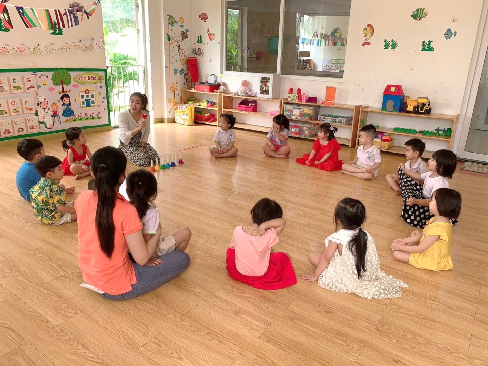 - 1 lớp 25-36 tháng: được trang bị máy điều hòa, tivi, máy vi tính, giường , tủ, gối, kệ đồ chơi, đồ dùng dạy học hiện đại, đầy đủ ...phù hợp cho trẻ hoạch động.