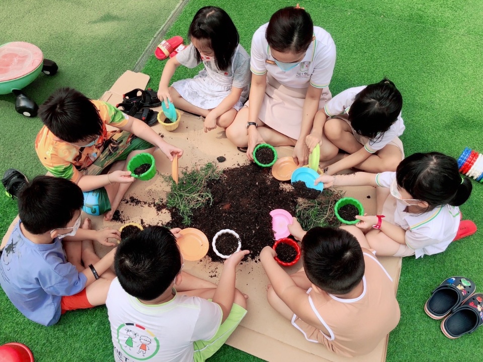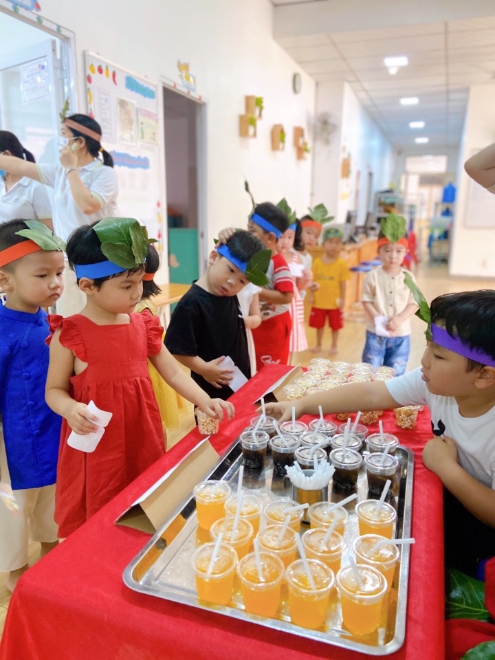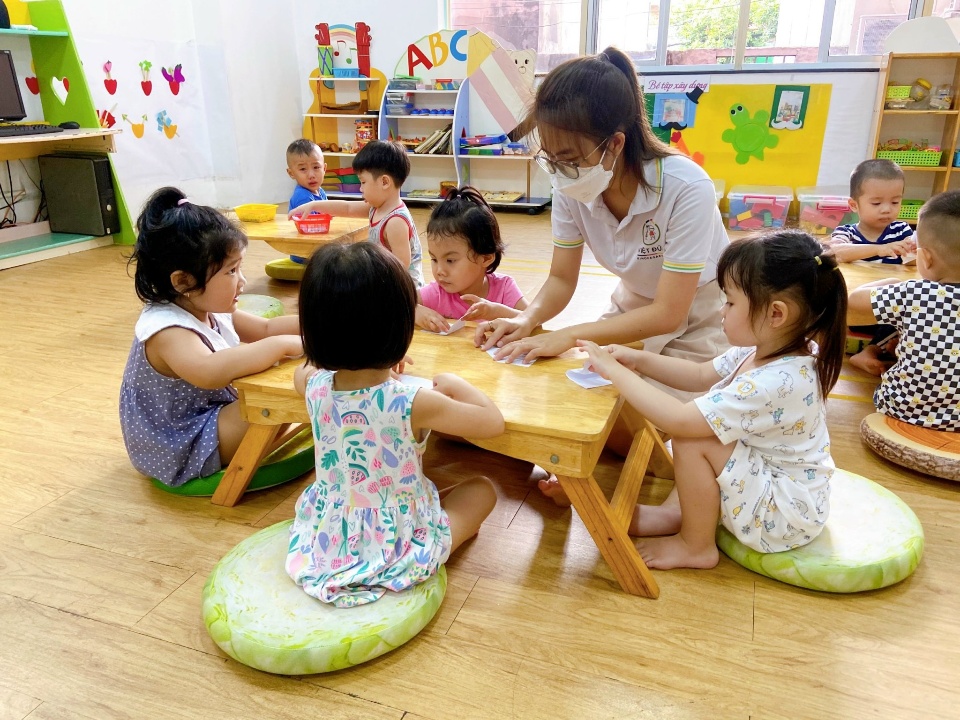 - 1 lớp lá: được trang bị máy điều hòa, tivi, máy vi tính, giường , tủ, gối, kệ đồ chơi, đồ dùng dạy học hiện đại, đầy đủ ...phù hợp cho trẻ hoạch động.