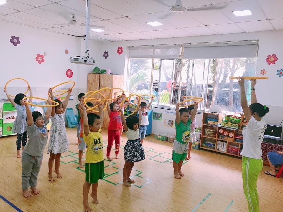 - Phòng giáo dục thể chất: được trang bị các dụng cụ thể dục, gậy bóng, cổng chui, vòng...phục vụ cho hoạt động của trẻ.