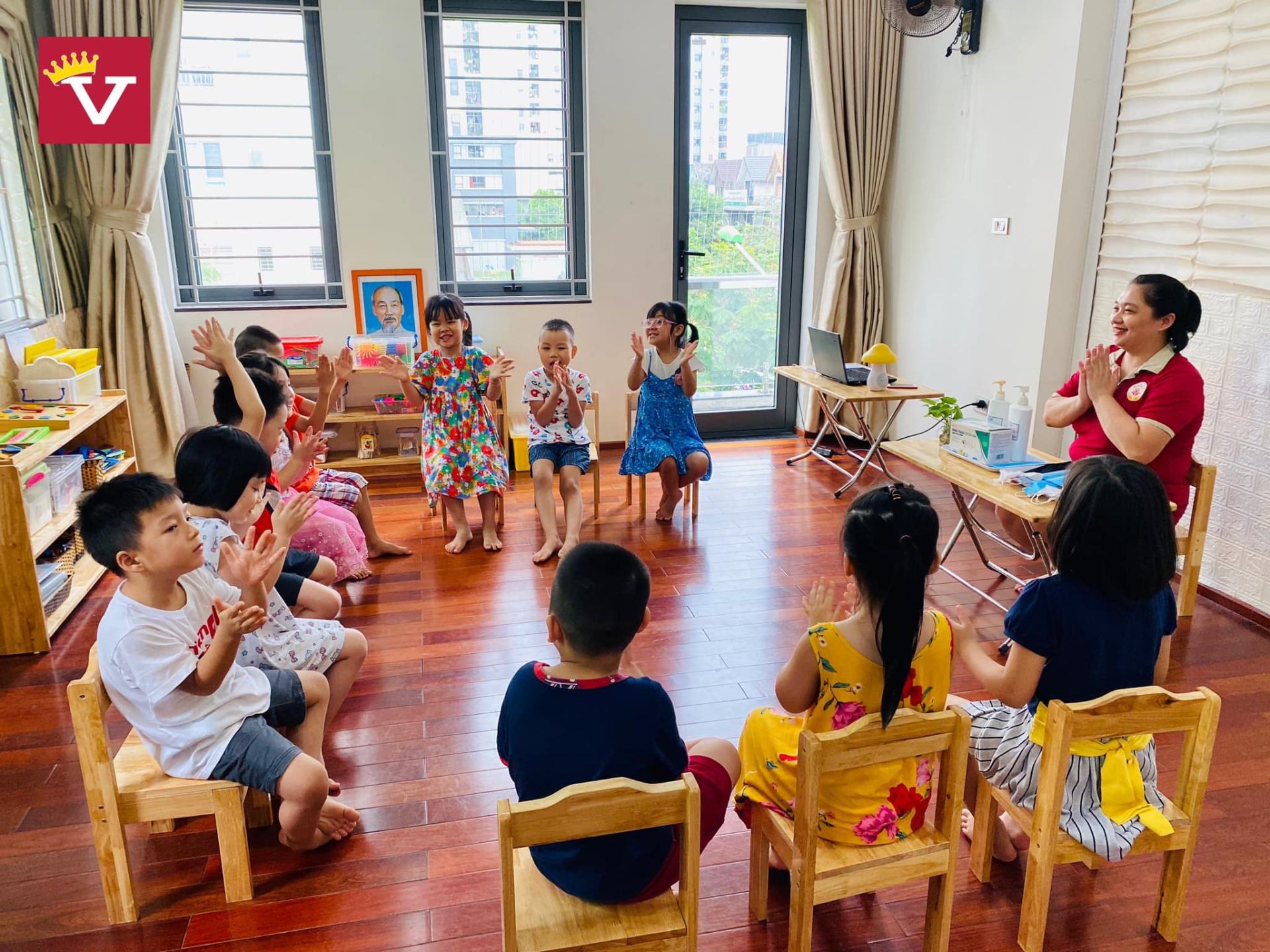 - Hệ thống phòng học thoáng mát, được bố trí ngập tràn ánh sáng tự nhiên, 100% sàn gỗ tự nhiên, điều hoà âm trần. Kích thước bàn ghế phù hợp với từng độ tuổi.