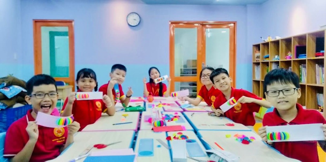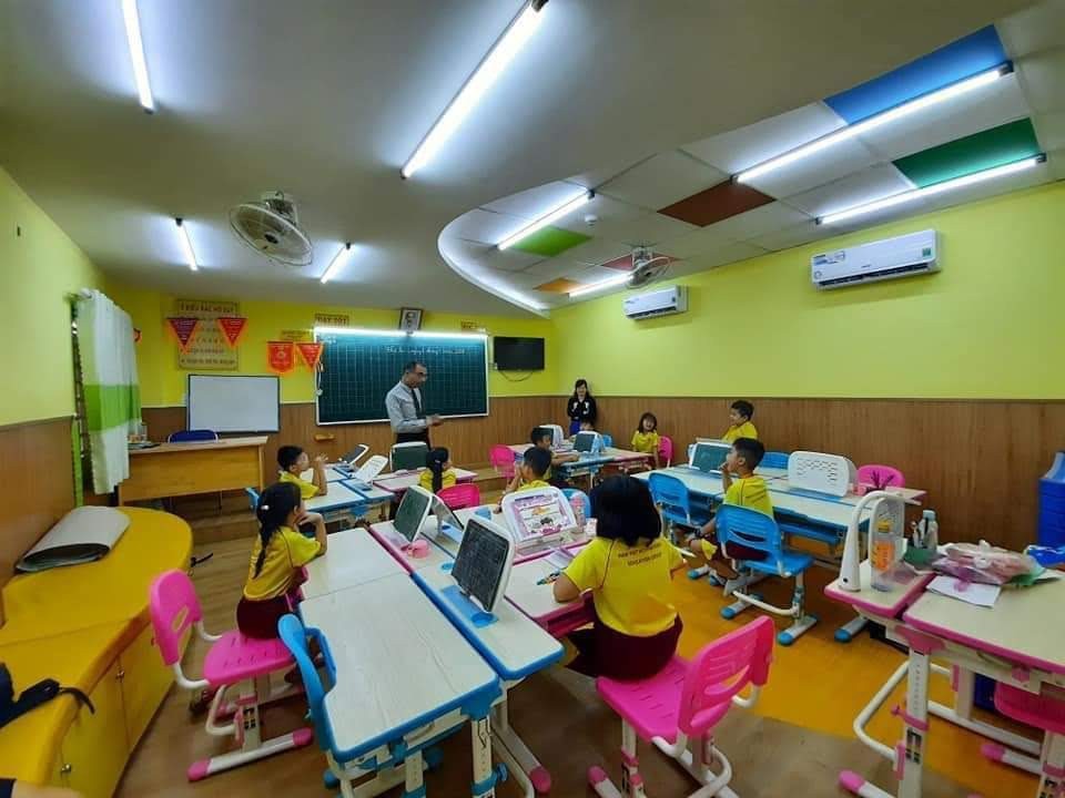 - Sử dụng bàn học riêng, bảng trắng bút dầu, bảng IPAD tương tác thông minh với âm thanh, hình ảnh trực quan, sinh động, học sinh có điều kiện tốt nhất để học tập, trau dồi tri thức, rèn luyện phẩm chất.