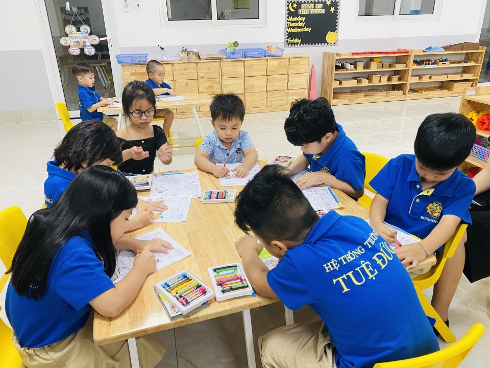 Song song với các nội dung chuẩn của chương trình quốc gia, Nhà trường đã linh hoạt thiết kế các hình thức giảng dạy sáng tạo, đặc biệt là các bài thực hành Montessori được áp dụng để giúp trẻ hình thành và hoàn thiện những kiến thức nền tảng cũng như các kỹ năng sống thiết yếu. Đây là điểm xuất phát vững chắc cho hành trình học làm người của trẻ ở các cấp tiếp theo.